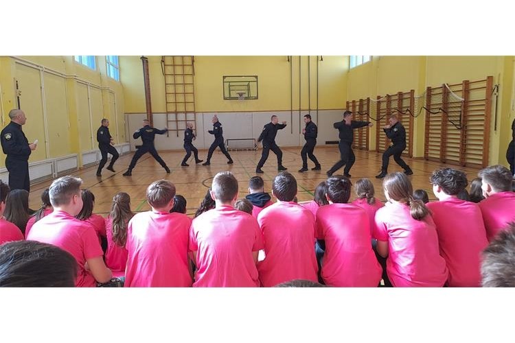 U četvrtak, 6. ožujka 2025., djelatnici Područne službe Karlovačke u suradnji s Policijskom upravom Karlovačkom obilježili su Dan ružičastih majica s ciljem povećanja svijesti o problemu nasilja među djecom i mladima, kao i poticanjem nenasilnog rješavanja sukoba uz prijedloge reagiranja u stresnim situacijama. Uz suradnju i s Gradom Karlovcem, aktivnost u dvorani PP Karlovac bila je podijeljena u dva dijela - prvo su djelatnici Područne službe Karlovačke održali predavanje na temu reagiranja u stresnim situacijama, a onda su djelatnici Policijske uprave Karlovačke pred 60-ak učenika osmih razreda Osnovne škole Dragojle Jarnević demonstrirali osnovne tehnike samoobrane. Grad Karlovac osigurao je prigodnu ružičastu majicu za svakog učenika."