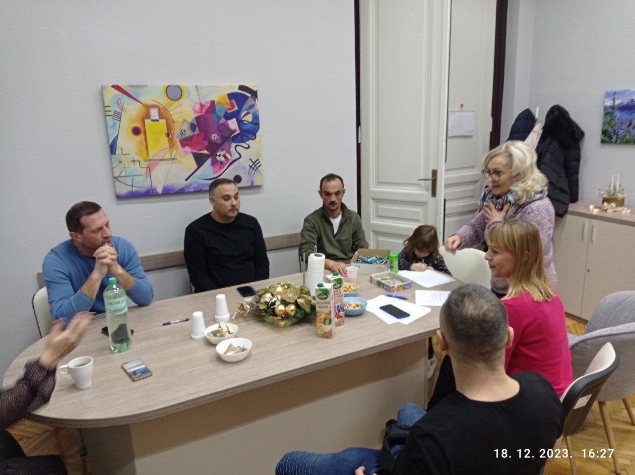Dana 18.12.2023. u prostorima Obiteljskog centra, Područne službe Osječko-baranjske, organizirali smo druženje očeva koji su sudjelovali u ciklusu radionica Rastimo zajedno i dalje, a koje su proveli stručni radnici Daria Čagalj, mag.act.soc i Miro Maćešić, mag. psych.