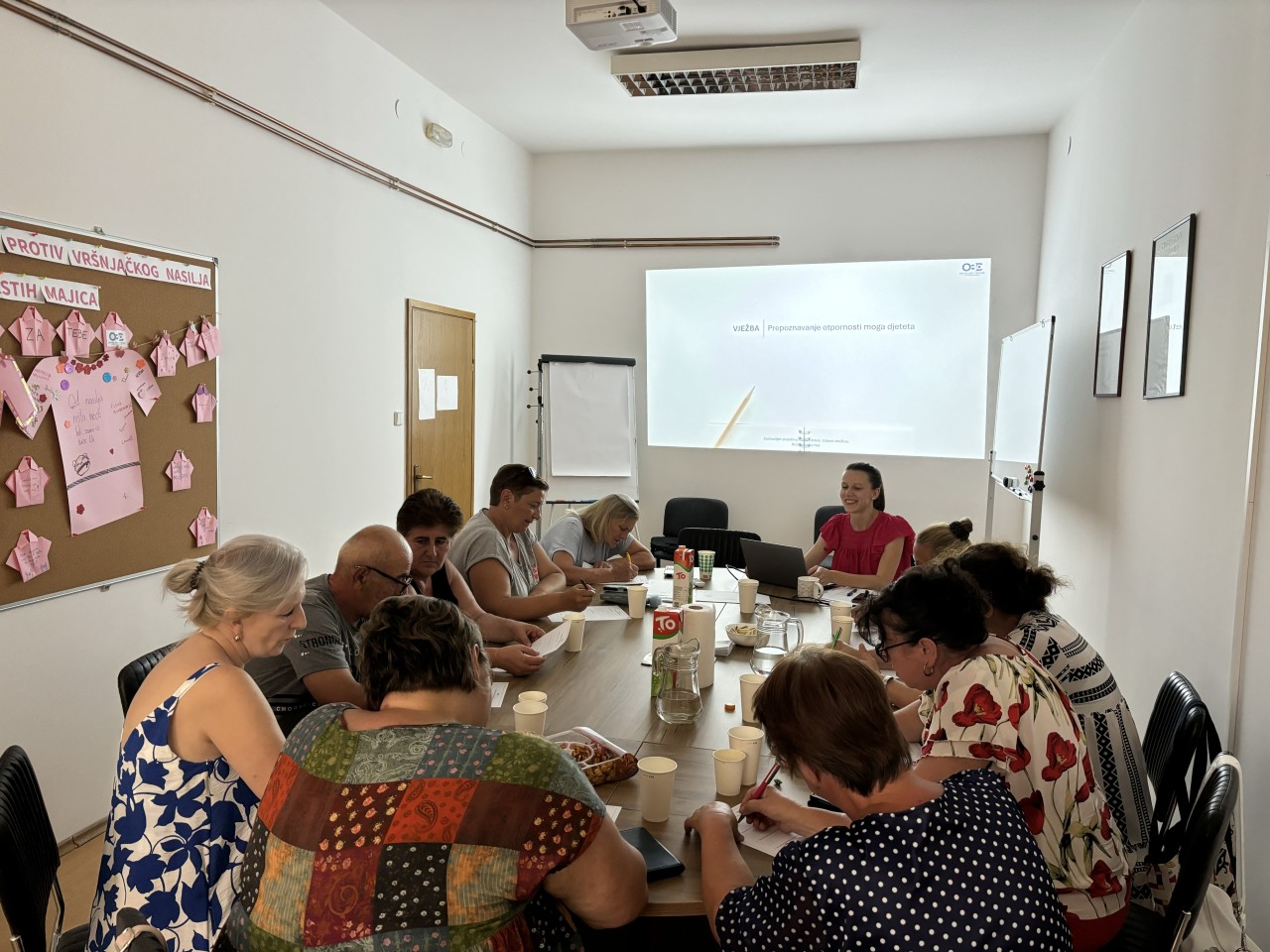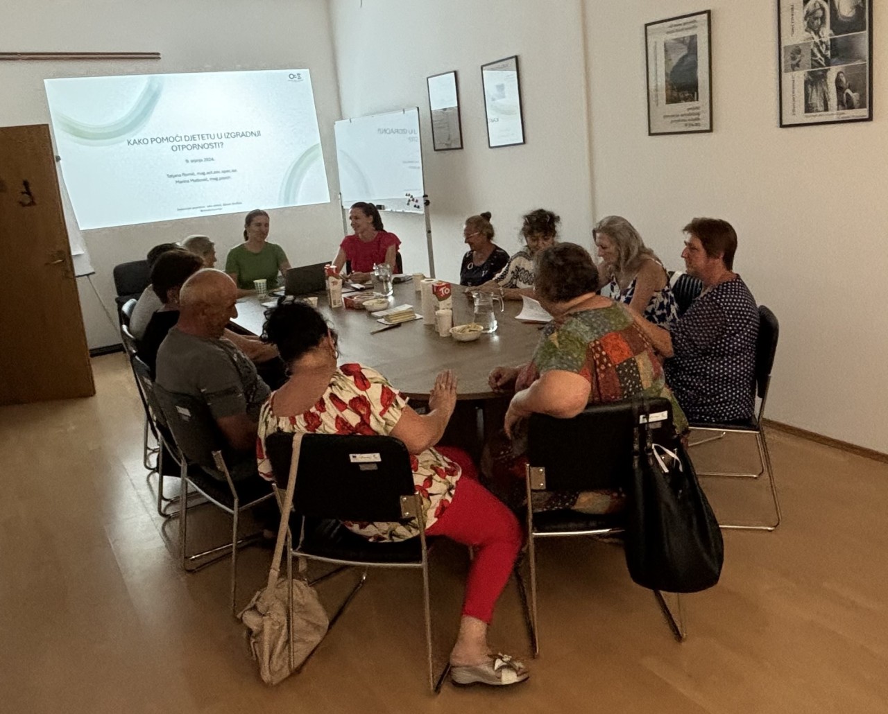 Predavanje su održale stručne radnice Marina Matković, mag.psych. i Tatjana Romić, mag.act.soc.spec.iur., a na istom je sudjelovalo 10 postojećih udomitelja za djecu s područja Vukovarsko-srijemske županije. Udomitelje se upoznalo s pojmom psihološke otpornosti, informiralo ih se o karakteristikama otporne djece, zaštitnim faktorima koji mogu jačati otpornost te su prisutni dobili praktične smjernice kako mogu pomoći djetetu u izgradnji otpornosti. Osim toga, udomitelji su imali priliku prepoznati snage vlastite udomljene djece te osmisliti načine kako oni mogu doprinijeti u jačanju njihove otpornosti. Sudionici su tijekom predavanja rado razmjenjivali i dijelili svoja iskustva, predavanje su procijenili edukativnim i korisnim te su izrazili želju za sudjelovanjem u grupama podrške koje bi okupile postojeće udomitelje za djecu.