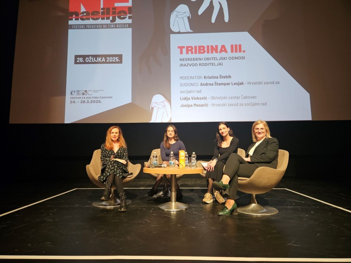 U tjednu od 24. do 28. ožujka 2025. godine Obiteljski centar, Područna služba Međimurska sudjelovala je na mini festivalu pod nazivom „NE-NASILJE!", koji je organiziran od strane Kazališne družine Pinklec u suradnji s Centrom za kulturu Čakovec, Kazališnom družinom Pinklec i Ministarstvom kulture i medija Republike Hrvatske. U pet dana organizirano je pet predstava te pet popratnih tribina, koje su održane nakon ogledanih predstava.