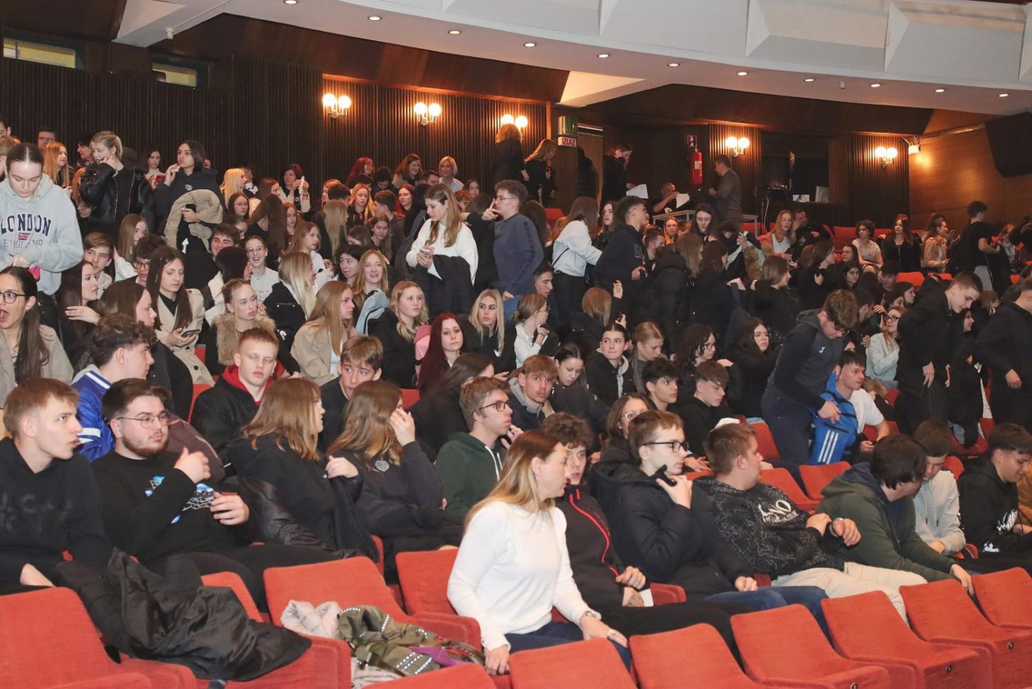 U četvrtak, 27. ožujka 2025. godine, organizirana je predstava imena „Pod pritiskom". Predstavom je upriličen prizor pritiska kojeg doživljavaju učenici, ali i nastavnici te načini kako se s time nose. Nakon predstave namijenjene učenicima završnih razreda osnovne škole te učenicima srednje škole, njihovim nastavnicima te roditeljima, organizirana je tribina tijekom koje su stručnjaci dali uvid u statističke pokazatelje pojavnosti elektroničkog nasilja. Odgovaralo se na pitanja zakonske regulative uporabe medija te tko su najčešće žrtve, a tko nasilnici. Pružao se uvid o tome jesu li i nastavnici na meti elektroničkog nasilja te ima li razlika po spolu u uključenosti u ovaj oblik nasilja. Razgovor se nastavio na temu razloga zašto mladi o nasilju šute i kako možemo prepoznati pravu i opasnu prijetnju. Iznesene su preporuke sustava kontrole nad elektroničkim uređajima te kome se djeca i mladi mogu obratiti za pomoć. Nadalje, obuhvatilo se i važno područje primijećene pojavnosti identificiranja mladih s viđenim u online svijetu i stvaranje tzv. Virtualnog selfa. Na kraju su prisutnima pružene informacije u smjeru zaštite od potencijalnih rizika u online svijetu te kako spriječiti potencijalnu pojavnost ovisnosti o ovom obliku ponašanja. Na tribini je sudjelovalo 160 učenika i učitelja.