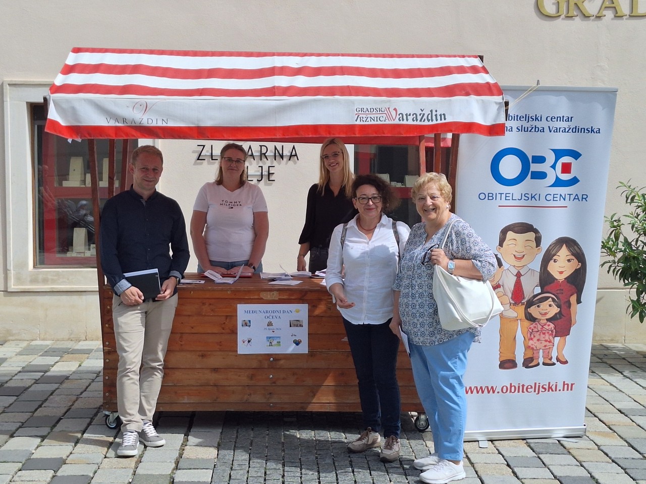 Obiteljski centar, Područna služba Varaždinska je dana 14. lipnja 2024. godine organizirala javnu promotivnu aktivnost uoči Međunarodnog dana očeva. Glavni cilj aktivnosti bio je istaknuti značajnu ulogu očeva u životu djeteta i upoznati zainteresirane građane s doprinosom koji upravo očevi imaju u psihosocijalnom razvoju djeteta. Također, cilj aktivnosti je bio promovirati Obiteljski centar, Područnu službu Varaždinsku i usluge koje provodi, između ostalog i programe podrške očevima u ostvarivanju roditeljske uloge. Podijeljeni su informativni i edukativni letci o Međunarodnom danu očeva i o radu Obiteljskog centra, Područne službe Varaždinske, na koji način su se promovirale usluge i programi dostupni građanima.