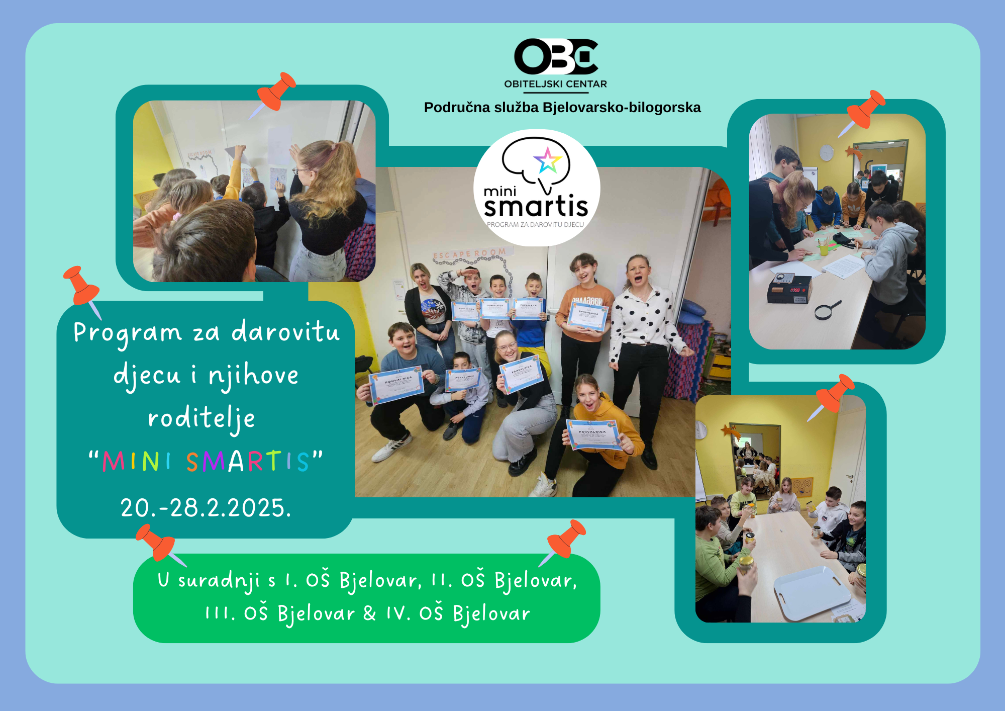 Tijekom praznika proveden je novi autorski program Područne službe Bjelovarsko-bilogorske za darovitu djecu "Mini Smartis". Darovita djeca iz svih bjelovarskih osnovnih škola okupila su se i kroz zabavne aktivnosti zajedno učila, promišljala, zaključivala i kreativno se izražavala. Njihovi roditelji osnaženi su u svojim roditeljskim kompetencijama s obzirom na posebne odgojno obrazovne potrebe darovite djece.