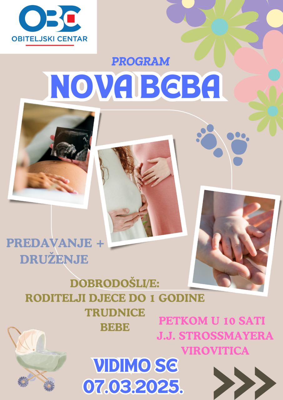 Obiteljski centar započinje novu programsku aktivnosti namijenjenu roditeljima djece do 1 godine starosti i trudnicama a koji provodi u suradnji s Općom bolnicom Virovitica, Domom zdravlja te Matičnim uredom.