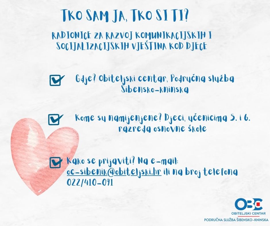 Obiteljski centar Područna služba Šibensko-kninska započinje s provođenjem radionica za djecu „Tko sam ja, tko si ti?"