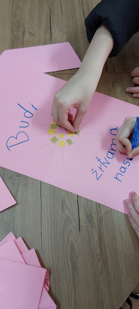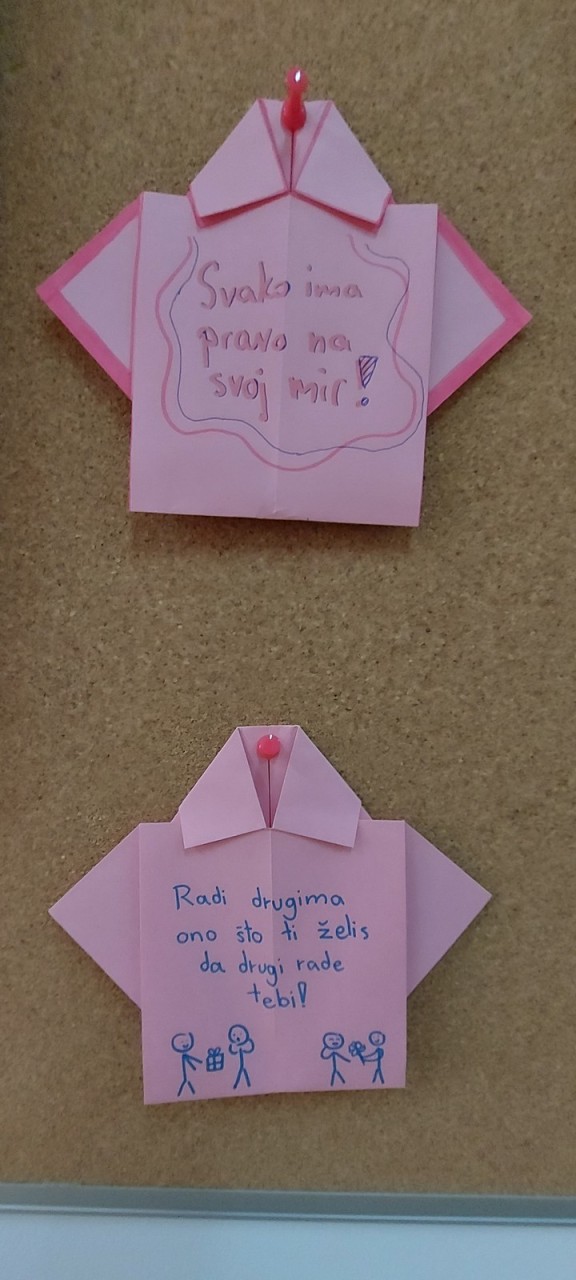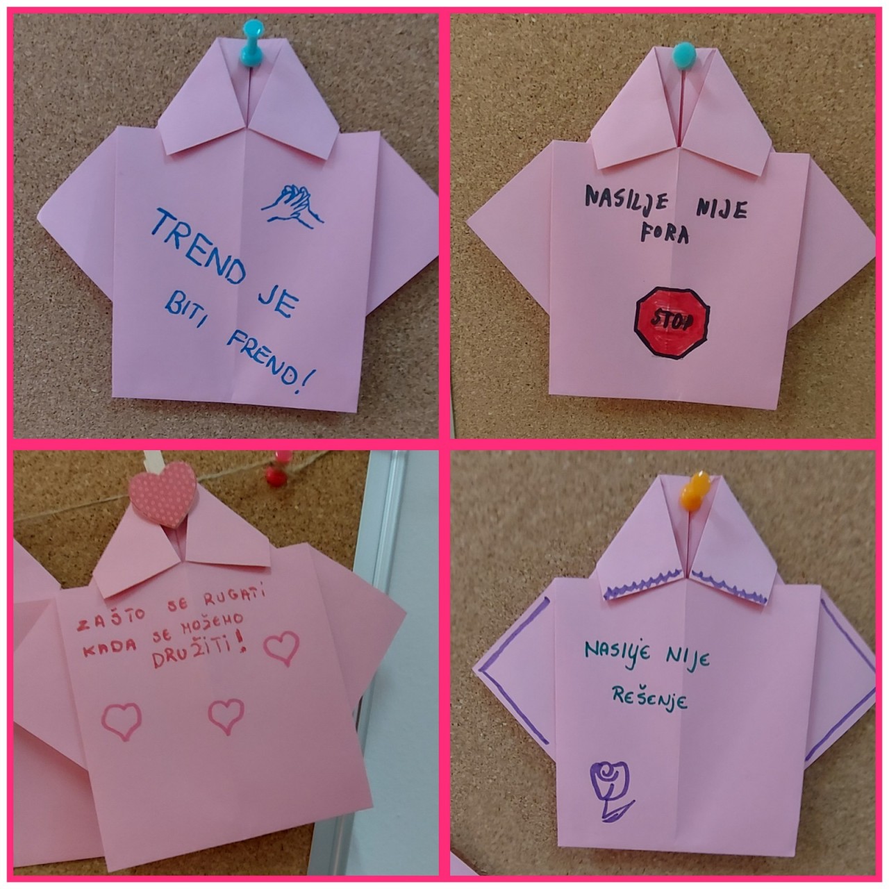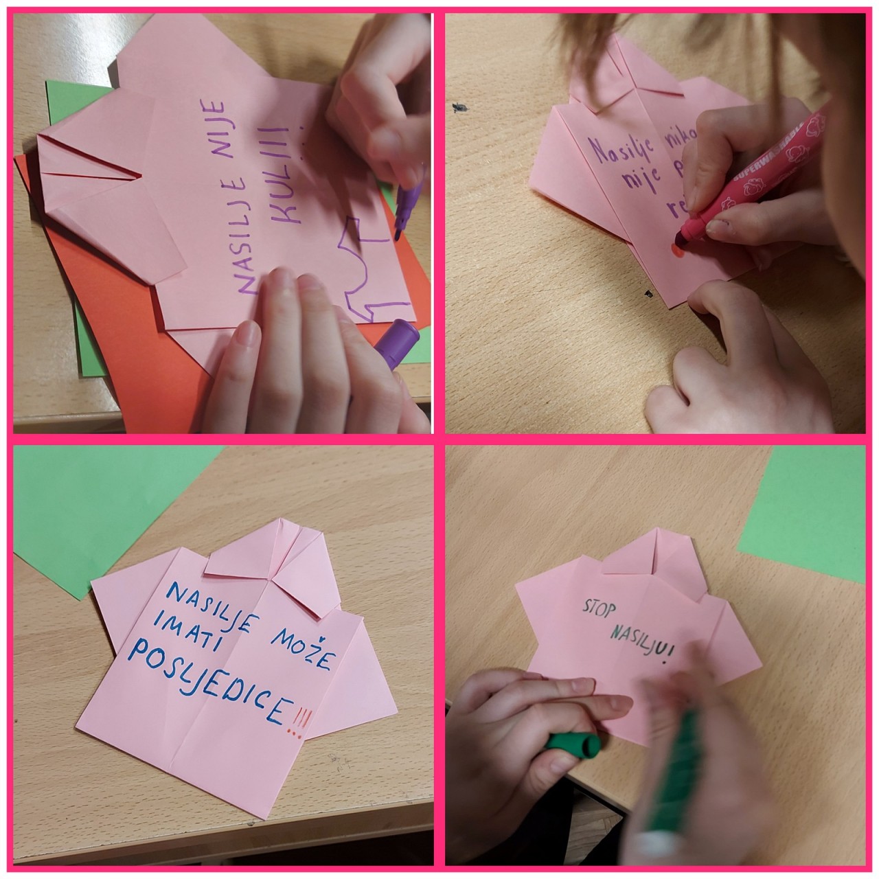 U radionicama je sudjelovalo ukupno 17 učenika, a cilj je bio upoznati učenike s elementima nasilja, potaknuti ih na promišljanje o razlikama između konflikta i nasilja te ih senzibilizirati za problematiku vršnjačkog nasilja. Uz navedene aktivnosti učenici su imali priliku kreativno se izraziti i tako osmisliti svoje poruke podrške te, uz svoj slogan na majici izrađenoj od papira, izraditi i jednu veliku majicu sa zajedničkim sloganom kojim su na simboličan način vršnjačkom nasilju rekli „ne".