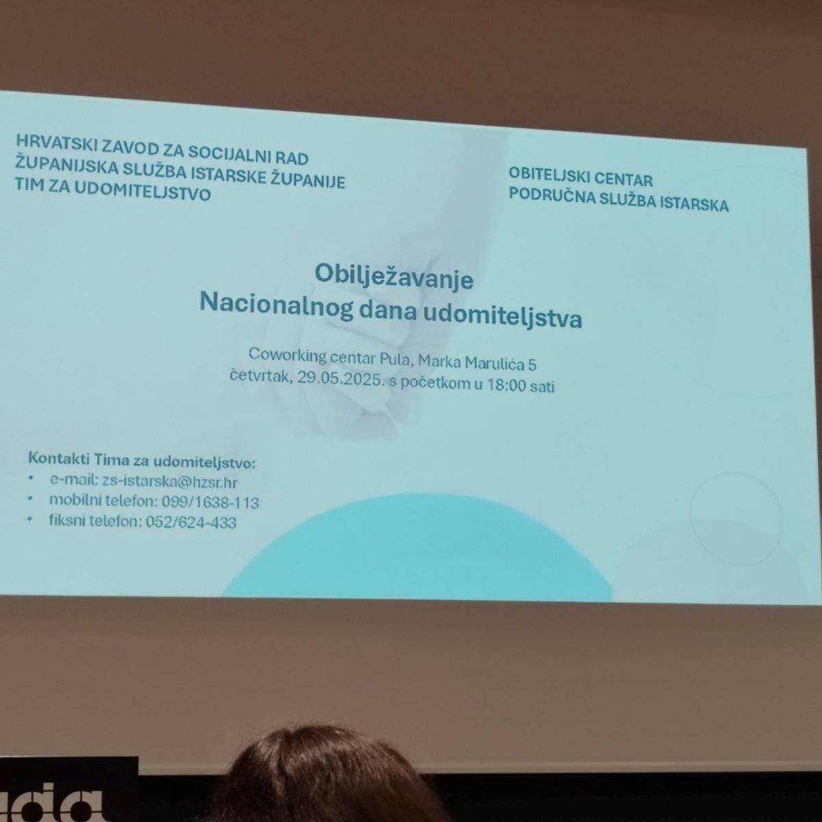 Dana 29. svibnja 2025. godine obilježen je Nacionalni dan udomiteljstva u Istarskoj županiji zajedničkim okupljanje udomitelja i njihove djece. Okupljanje je održana u Puli u Poduzetničkom centru Coworking od 18.00 do 20.00 sati u organizaciji Tima za udomiteljstvo, Županijske službe Istarske županije Hrvatskog zavoda za socijalni rad i Obiteljskog centra, Područne službe Istarske.