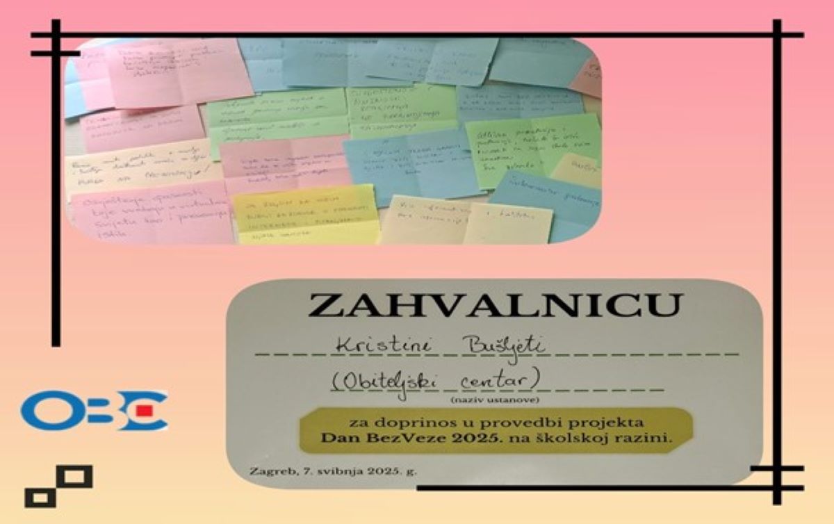 Dan BezVeze nastao je u okviru istoimenog projekta kojem je cilj osvijestiti preopterećenost tehnologijom i opasnosti iste te promovirati provođenje kvalitetnog vremena bez ekrana. Projekt je pokrenut od strane Mirene Maljković, učiteljice informatike Osnovne škole Rapska te se svake godine uključuje sve više škola u Hrvatskoj. Posebno nas veseli da je stručna služba škole koja je inicirala ovaj hvalevrijedan projekt pozvala Obiteljski centar, Područnu službu Grad Zagreb da se uključi u obilježavanje Dana BezVeze održavanjem predavanja za roditelje.