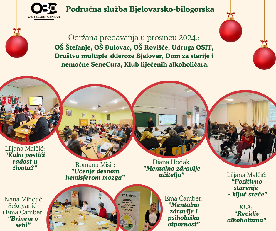 Retrospektivom naših aktivnosti u prosincu s kojima smo gostovali u javnim ustanovama diljem Bjelovarsko-bilogorske županije, uz svakodnevni preventivni rad i podršku korisnicima koji nam se obraćaju, završavamo ovu dinamičnu godinu.