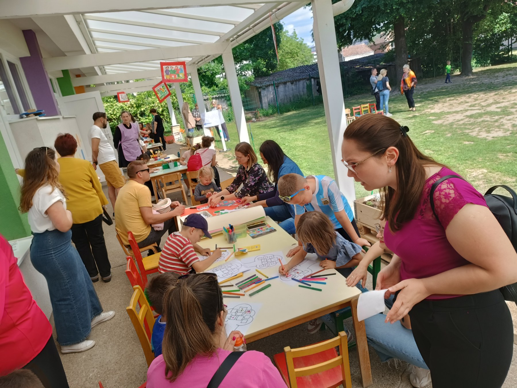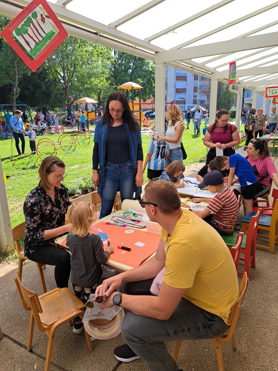 U dvorištu vrtića okupila su se djeca s članovima svojih obitelji – majkama, očevima, braćom i sestrama, bakama i djedovima. Stručne radnice Obiteljskog centra, kao i odgojiteljice u vrtiću su pripremile niz aktivnosti – od crtanja, pjevanja, čitanja, izrade kolaža, lutkarske predstave, sportskih natjecanja… kojima su obogatile ovo poslijepodne. Na ovaj smo način, obiteljski i u zajedništvu, uživali i podsjetili se da je djeci najvažnije da budu okružena članovima svojih obitelji.