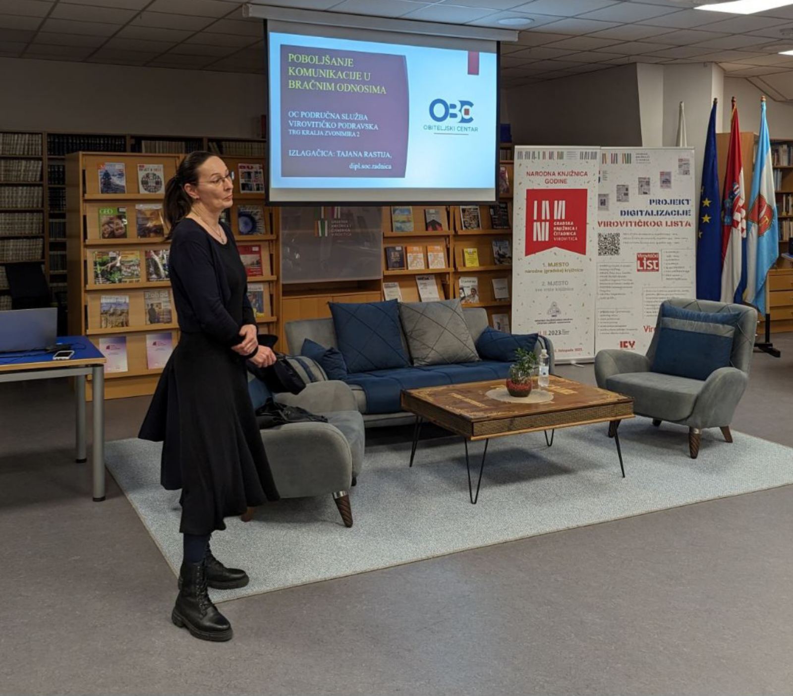 Svaki zadnji utorak u mjesecu stručne radnice Obiteljskog centra, PS Virovitičko-podravske održat će se predavanje za javnost – u suradnji s Gradskom knjižnicom i čitaonicom Virovitica.