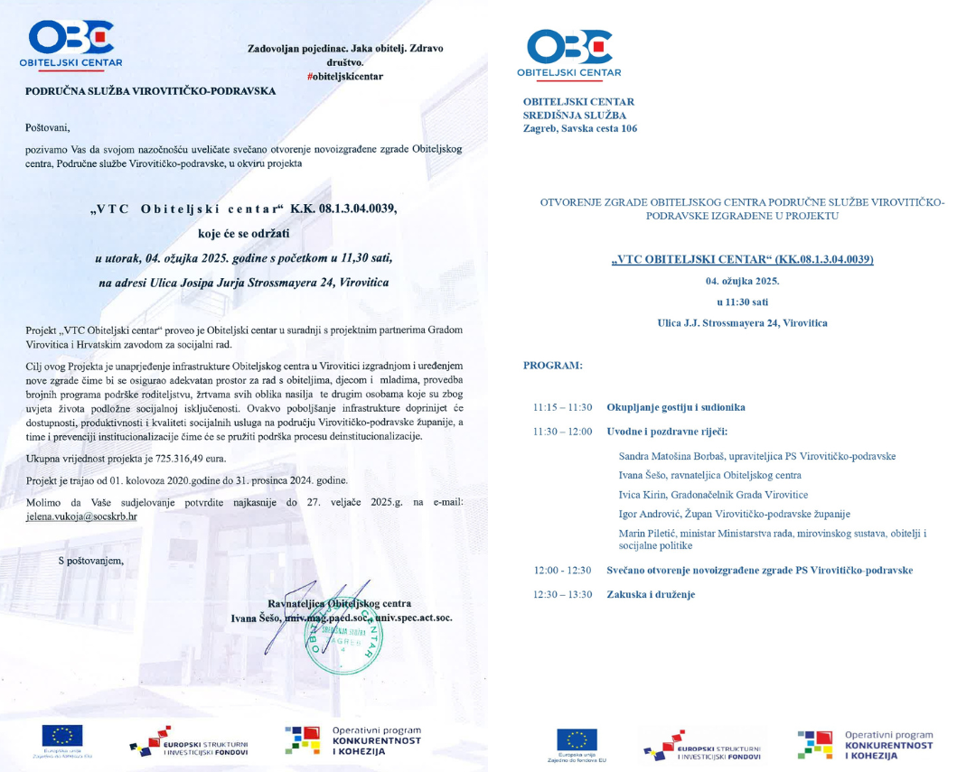 Otvorenje zgrade Obiteljskog centra Područne službe Virovitičko-podravske izgrađene u projektu
