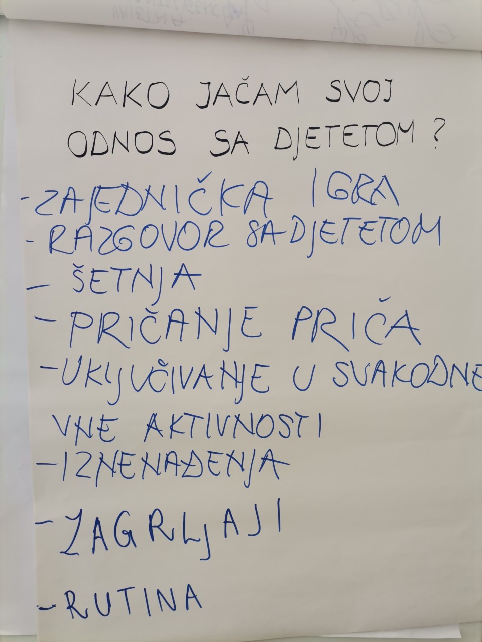 Na radionici je sudjelovalo 9 očeva koji su svojim aktivnim sudjelovanjem doprinijeli pozitivnoj atmosferi. Kroz različite aktivnosti osvijestili smo izazove s kojima se suvremeni roditelji nose, na koji način jačaju i mogu jačati svoj odnos s djetetom, koje su njihove unutarnje snage i koliko im je važna podrška obitelji i okoline.