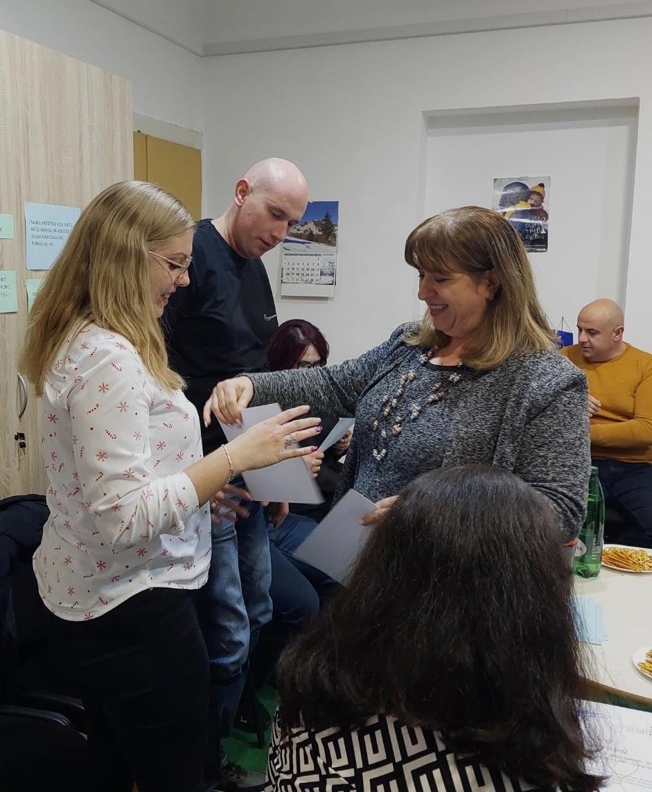 Stručne djelatnice Obiteljskog centra Područne službe Brodsko-posavske Božica Galić, Vedrana Lukić i upraviteljica Lidija Kućinski Fogadić u prosincu 2024. završile su Stručnu pripremu potencijalnih posvojitelja - Udruge na drugi način. Pet posvojiteljskih parova dobili su potvrde za uspješno završenu edukaciju.