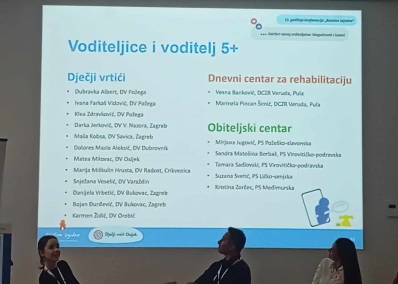 Osim što smo aktivno sudjelovali u samoj Konferenciji, možemo istaknuti i podatak da je ove godine naša upraviteljica Suzana Svetić primila Priznanje 5+, koje se dodjeljuje s obzirom na broj provedenih ciklusa programa podrške roditeljstvu Rastimo zajedno.