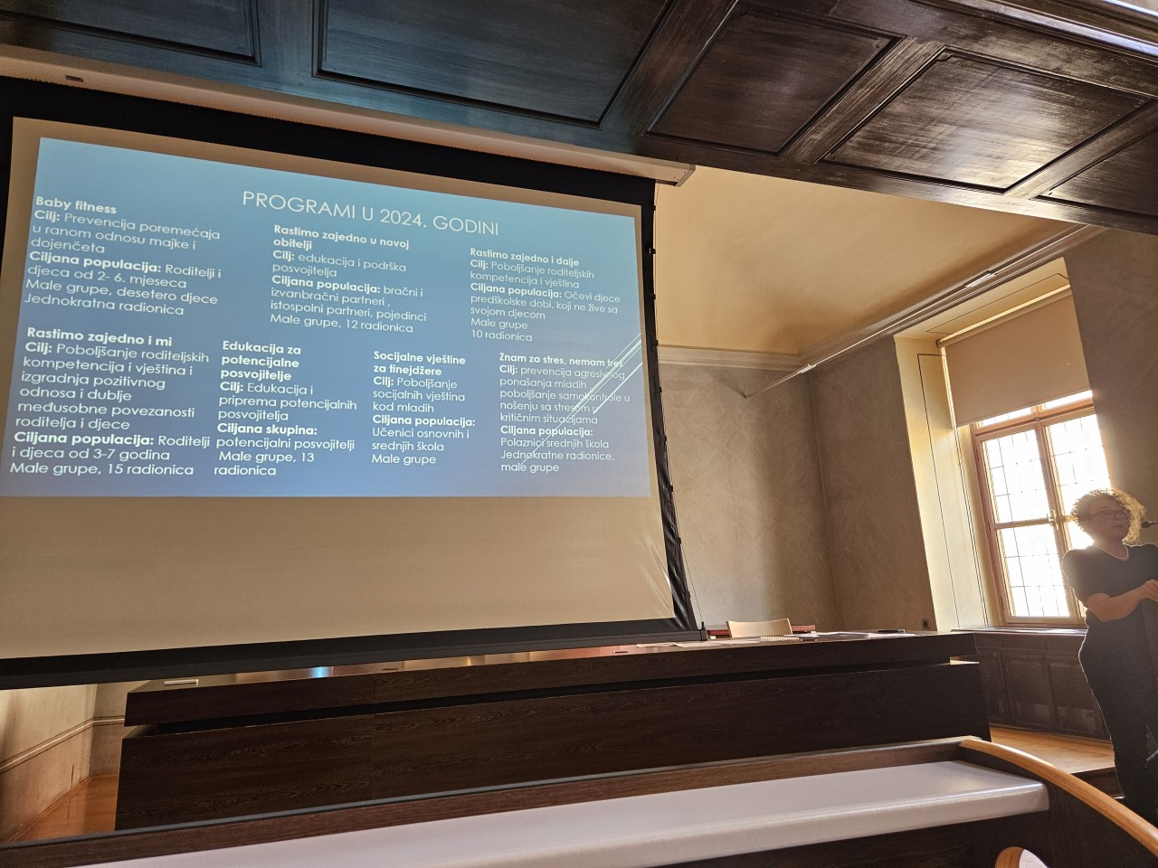 Dana 28. svibnja 2024. godine u prostoru Županijske palače Varaždin održan je Aktiv ravnatelja osnovnih i srednjih škola s područja Varaždinske županije tijekom kojeg su djelatnice Obiteljskog centra, Područne službe Varaždinske prezentirale strukturu i djelatnosti koje se provode u Obiteljskom centru s naglaskom na programe „Trening socijalnih vještina" i „Znam za stres, nemam tres" koji se mogu provoditi s učenicima u osnovnim i srednjim školama. Ravnateljima su podijeljeni letci s popisom usluga i programa koji se obavljaju u Obiteljskom centru kao i kontaktima djelatnika te su pozvani na daljnju suradnju i u novoj školskoj godini.