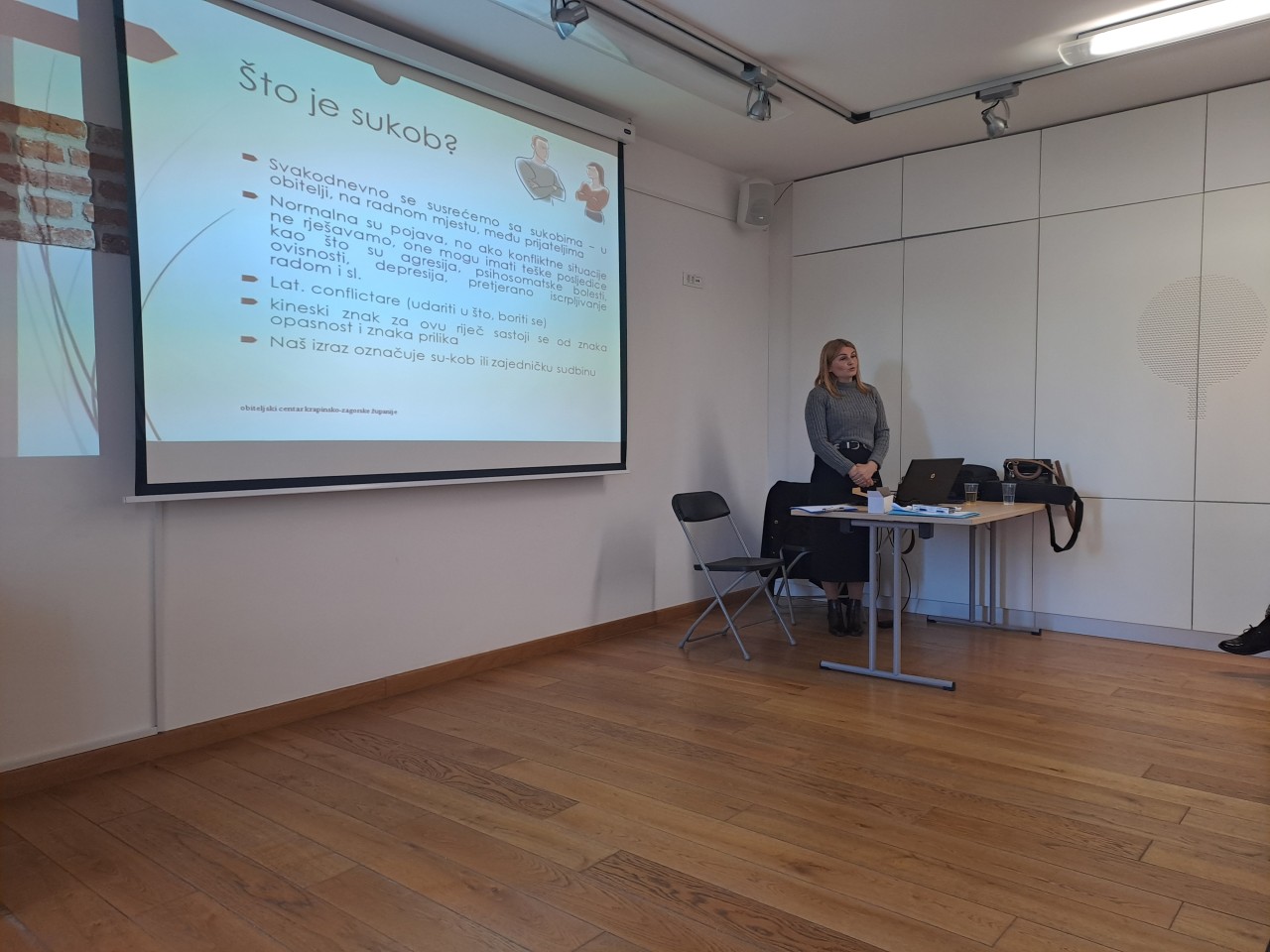 Stručne djelatnice Obiteljskog centra, Područne službe Krapinsko-zagorske, Sanja Krsnik i Suzana Gumbas, dana 10. listopada 2024. godine, sudjelovale su u edukaciji udomitelja za djecu Krapinsko-zagorske županije, održanim predavanjima na temu „Kako poboljšati komunikaciju s djecom" i „Nenasilno rješavanje sukoba". Ciljevi oba predavanja bili su približiti udomiteljima temelje pozitivne komunikacije i asertivnog ponašanja uz konkretne primjere kako razgovarati s djecom u različitom periodu njihovog života te osvijestiti obrasce ponašanja koji ne rješavaju sukob već ga potiču. Dani su im savjeti kako se sukobi mogu konstruktivno riješiti te su potaknuti na razmišljanje i analizu sukoba kroz osobne primjere.