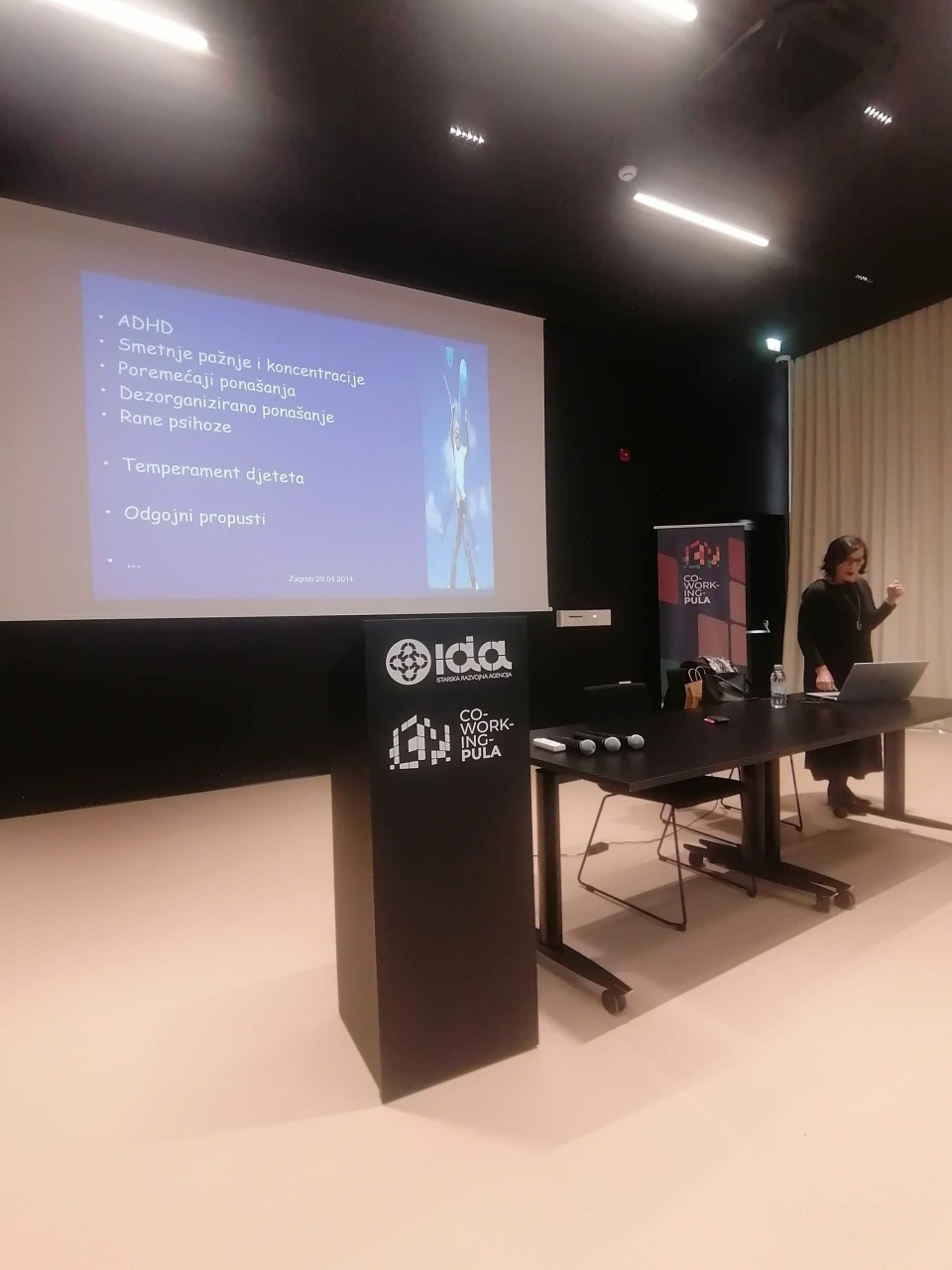 Tema predavanja bila je „ADHD i slični popremejaćo kod djece", a predavanje je održala izv. prof.dr.sc. Mirjana Graovac, dr.med. specijalist psihijatrije, subspecijalist dječje i adolescentne psihijatrije, subspecijalist psihoterapije.