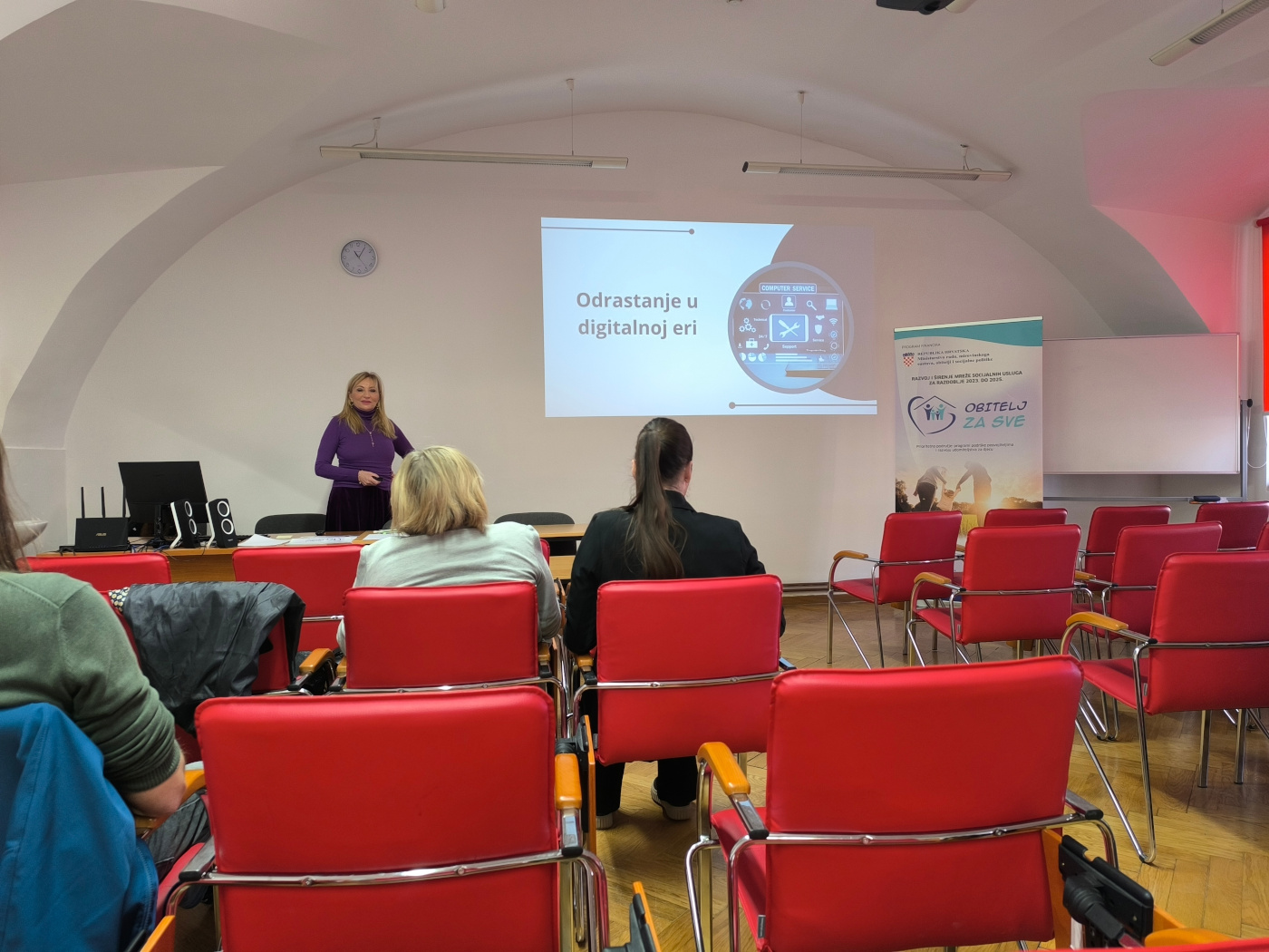 Stručne radnice Područne službe Bjelovarsko-bilogorske prisustvovale su predavanju prof.dr.sc. Gordane Buljan Flander na temu „Odrastanje u digitalnoj eri". Predavanje se održalo zahvaljujući projektu „Obitelj za sve" Udruge za podršku i poticanje zajedništva „Hrvatska pomaže" u okviru javnog poziva „Razvoj i širenje mreže socijalnih usluga za razdoblje od 2023. do 2025. godine".