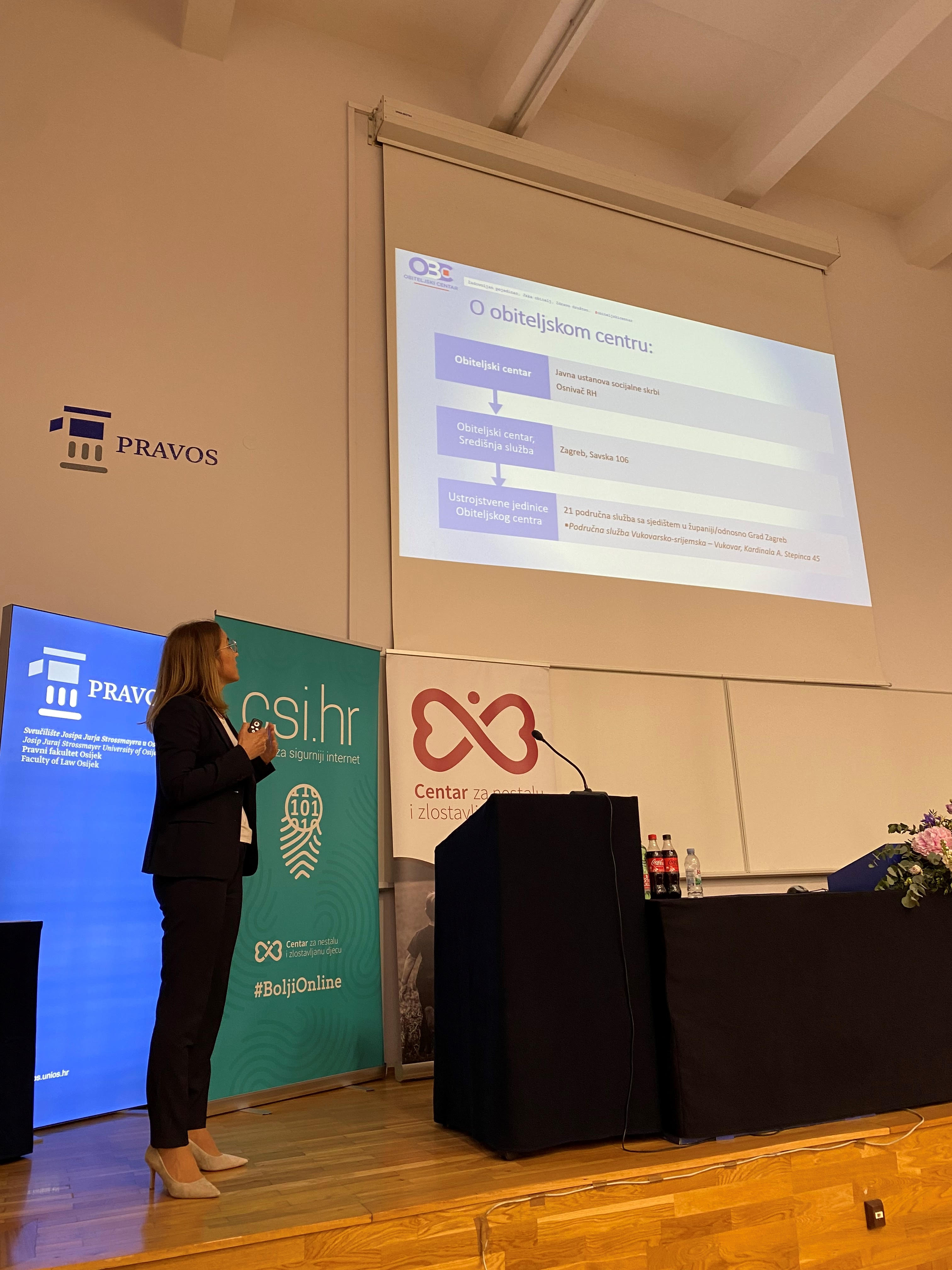 Dana 17. svibnja 2024. godine, a na poziv Studentskog zbora Pravnog fakulteta Osijek, upraviteljica Obiteljskog centra, Područne službe Vukovarsko-srijemske održala je predavanje na Kongresu studenata socijalnog rada „Rasprostranjenost socijalnog rad i njegova uloga", a na temu „Socijalni rad: pogled iz perspektive Obiteljskog centra". Na predavanju je sudjelovalo 45 sudionika. Cilj predavanja bio je predstaviti aktivnosti Obiteljskog centra, njegovu djelatnost te studentima pomoći u boljem razumijevanju rasprostranjenosti i važnoj ulozi socijalnog rada.