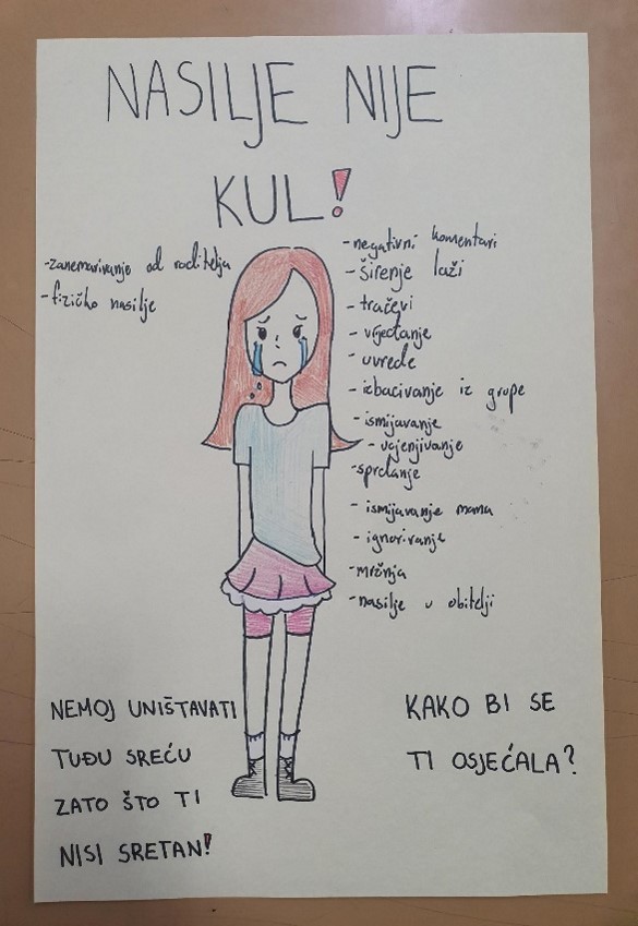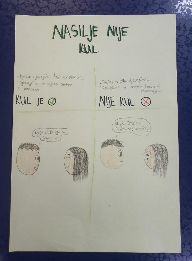 Povodom Međunarodnog dana borbe protiv nasilja nad ženama, dana 26. studenog 2024. godine, s učenicima sedmog razreda Osnovne škole Zapruđe provedena je preventivna radionica pod nazivom „Nasilje nije kul." Učenici su sudjelovali u raspravi, a kroz izradu kreativnih letaka poručili svoju poruku o važnosti i predanosti u njegovanju vrijednosti koju želimo vidjeti u društvu.