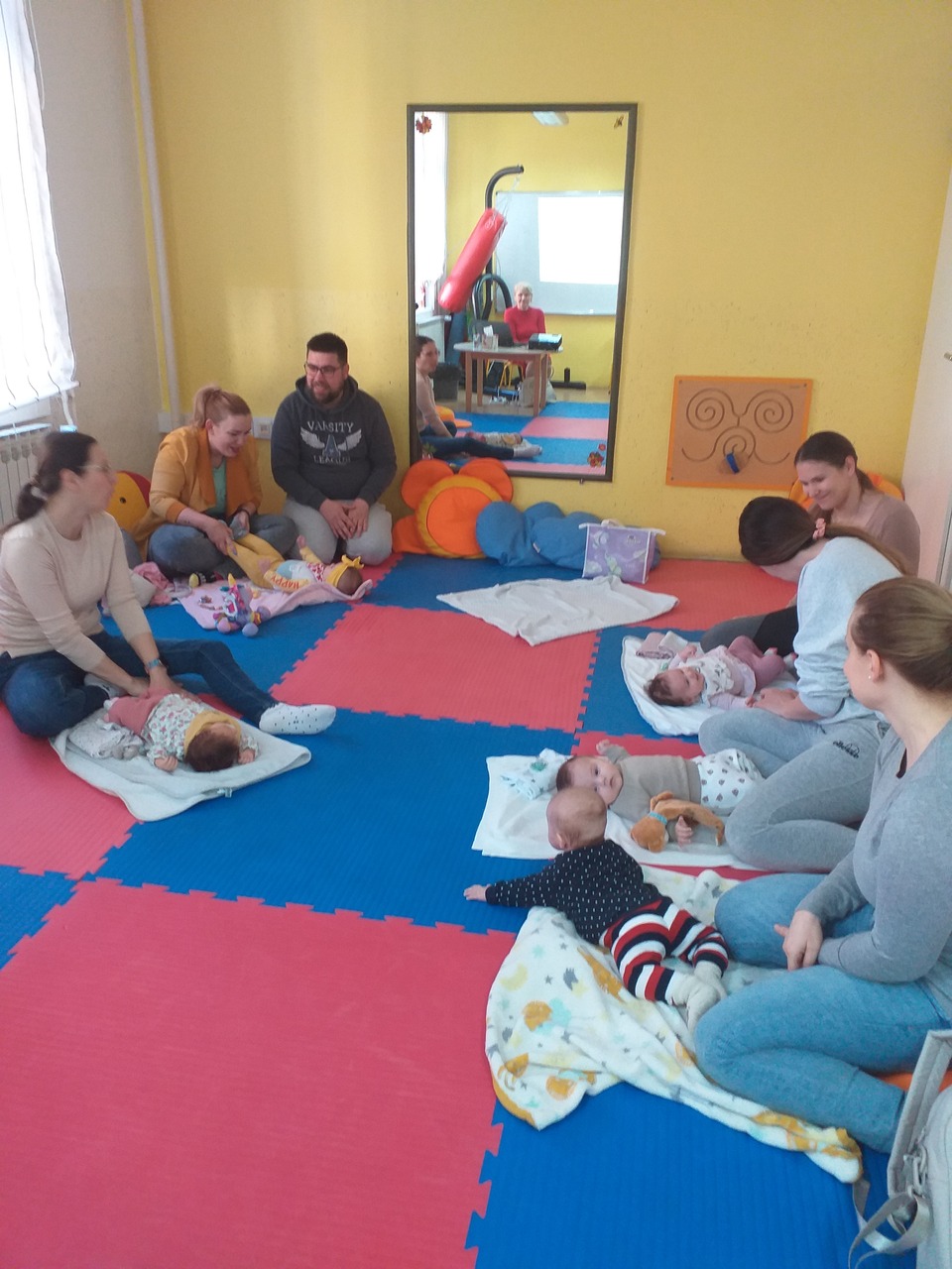 Cilj programa je stimulacija rane privrženosti između djeteta i roditelja, uz pomoć razvojne gimnastike i masaže, te psihosocijalne i zdravstvene podrške. Kroz vježbe i predavanja interdisciplinarnog tima od kojih su dvije naše vanjske suradnice, pedijatrica dr. Marija Čatipović i fizioterapeutkinja Jasna Rudec, mame, tate i bebe uče kako međusobno još bolje komunicirati i to ne samo glasom, već i dodirom i pokretom, kako bolje zadovoljiti bebine potrebe te bolje brinuti o bebinom zdravlju. Radionice se održavaju zahvaljujući suradnji Obiteljskog centra Područna služba Bjelovarsko-bilogorska s Gradom Bjelovarom i bjelovarskom Udrugom za zdravo i sretno djetinjstvo.
