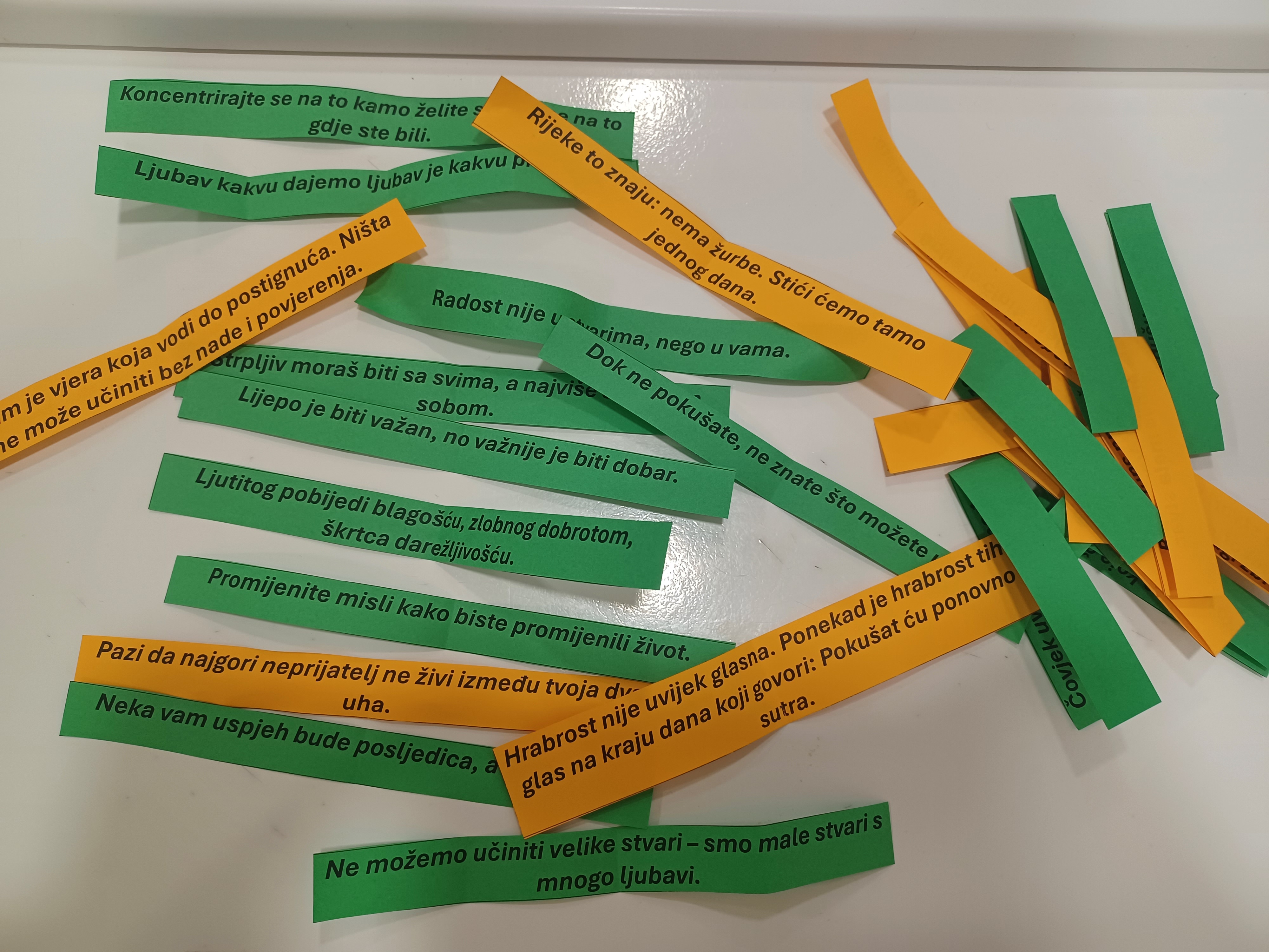 Kroz radionicu se s članovima Udruge, razgovaralo o optimizmu, njegovu značaju za cjelokupnu dobrobit pojedinca, kako pesimistične misli preoblikovati u optimistične. Također, razgovaralo se o životnim ciljevima - kako postavljati realne, dostižne i konkretne ciljeve te kako osjećaj uspjeha u postizanju manjih ciljeva također doprinosi bolje mentalnom zdravlju pojedinca. Kroz aktivnost "Kutija pozitivnih misli" sudionici su osvijestili važnost i snagu pozitivnog razmišljanja te su radionicu priveli kraju u veselom i pozitivnom raspoloženju.