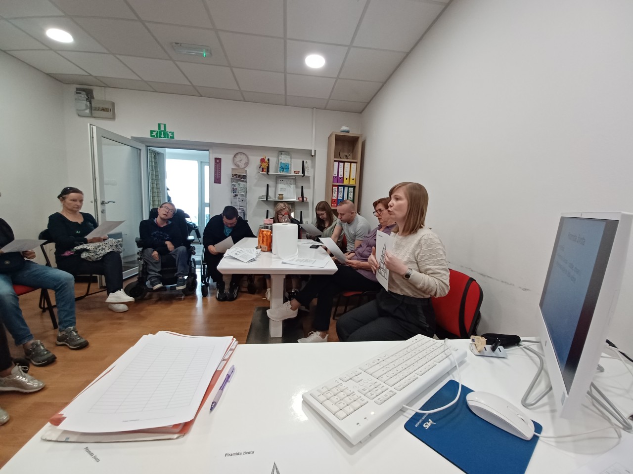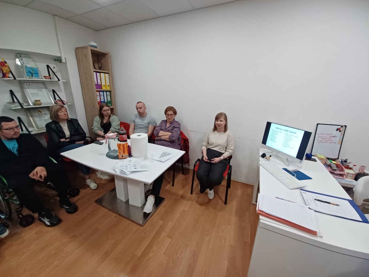 Dana 26. travnja 2024. godine održana je radionica pod nazivom „Svijet kvalitete i psihološke potrebe" za članove Udruge distrofičara Krapina u sklopu projekta „Za jednake mogućnosti". Radionicu je ispred Obiteljskog centra, Područne službe Krapinsko-zagorske, koji je ujedno i partner na Projektu provela stručna radnica Sandra Kos. Kroz radionicu se obradila tema o teoriji izbora, svijetu kvalitete, kako na njega utječu naši odnosi i navike, izrađivala se piramida života, članovi Udruge su upoznati sa psihološkim potrebama, te su upućeni u važnost i pozitivno zadovoljavanje istih. Članovi Udruge su vrlo aktivno sudjelovali u radu, izrazili zadovoljstvo obrađenom temom, iznosili svoja razmišljanja i stavove te davali vlastite primjere.