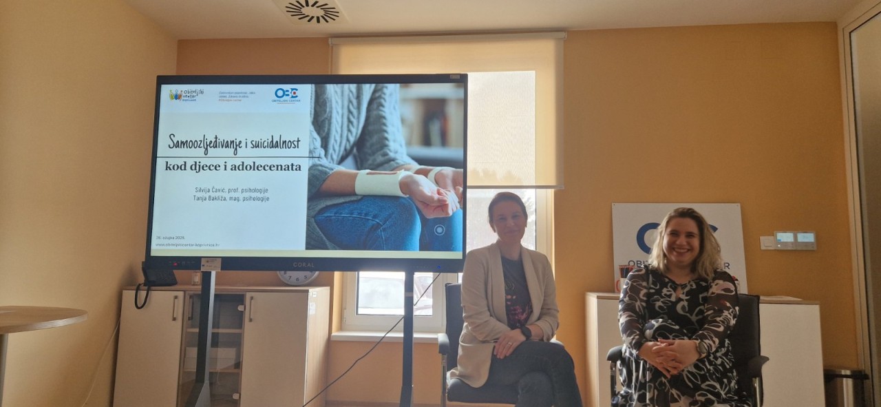 Dana 26. ožujka 2025. godine, u Obiteljskom centru Područna služba Koprivničko-križevačka, održano je edukativno predavanje na temu „Samoozljeđivanje i suicidalnost kod djece i mladih".