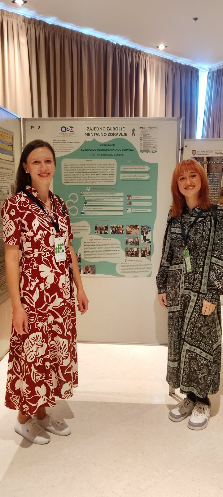 31. Godišnja konferencija hrvatskih psihologa održana je u Opatiji od 6. do 9. studenoga 2024. godine s temom „Suvremeni izazovi mentalnog zdravlja u različitim radnim okruženjima". Stručne radnice Područne službe Vukovarsko-srijemske Dajana Marjanović, mag. psych. i Marina Matković, mag. psych. aktivno su sudjelovale na konferenciji s poster izlaganjem u okviru tematskog područja „Uloga i doprinos psihologije u interdisciplinarnoj suradnji" s naslovom rada „Zajedno za bolje mentalno zdravlje".