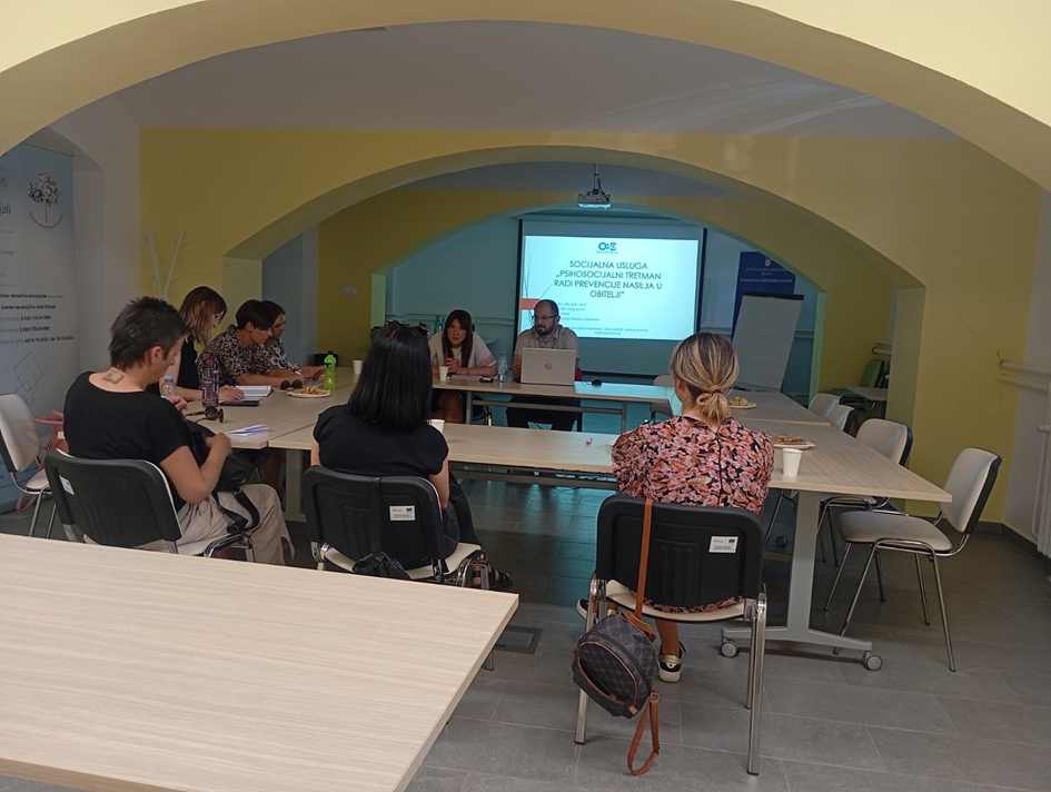 Dana 6. lipnja 2024. s početkom u 13.00 sati, u prostorima Obiteljskog centra Područne službe Osječko-baranjske organizirali smo stručni sastanak i prezentaciju usluge „Psihosocijalni tretman radi prevencije nasilničkog ponašanja" za djelatnike Područnih ureda Hrvatskog zavoda za socijalni rad s područja Osječko-baranjske županije. Prezentaciju su održali stručni radnici Sarah Sarić, dipl.psih.-prof. i Miro Maćešić, mag.psych. Nakon održanog sastanka sudionici su izrazili zadovoljstvo dobivenim uvidom u sadržaj i način upućivanja i provođenja navedene usluge te navode da su im jasniji kriteriji za uključivanje potencijalnih korisnika u psihosocijalni tretman.