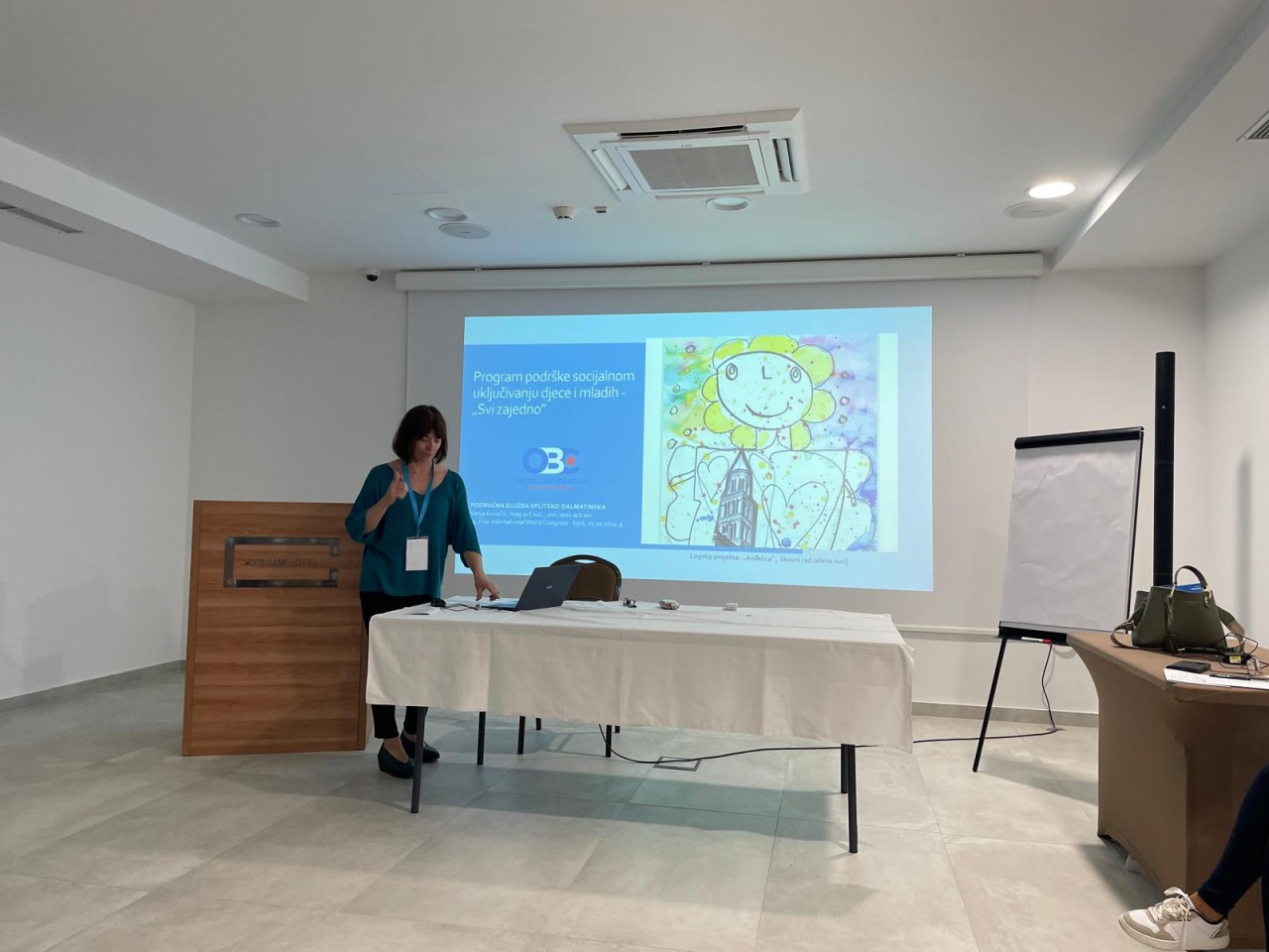 Sanja Kuvačić, mag.act.soc., univ.spec.act.soc., savjetnica, predstavila je „Program podrške socijalnom uključivanju djece i mladih - Svi zajedno", koji provodi Obiteljski centar - Područna služba Splitsko-dalmatinska. Jedan od ciljeva ovog programa upravo je podizanje kvalitete skrbi o djeci i mladima kroz dostupnost različitih usluga i sadržaja u lokalnoj zajednici.