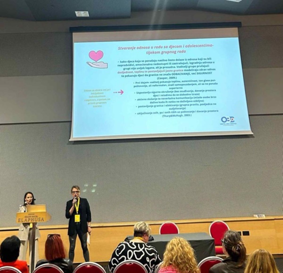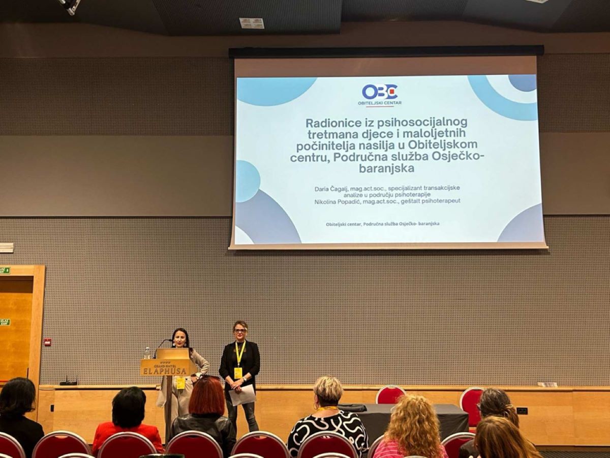 Dana 24. travnja 2025. godine, socijalna radnica i geštalt psihoterapeutkinja Nikolina Popadić te socijalna radnica i specijalizantica transakcijske analize Daria Čagalj održale su izlaganje o provedbi radionica u okviru Psihosocijalnog tretmana maloljetnika počinitelja nasilja. U okviru teme Odnos u fokusu, stručne radnice Područne služba predstavile su rad na razvoju profesionalnog odnosa u kontekstu psihosocijalnog rada. Predstavljene su radionice koje se provode kroz grupni rad u osnovnim i srednjim školama Osječko-baranjske županije, kao i kroz uslugu psihosocijalnog savjetovanja u okviru posebne obveze. Naglasak je stavljen na razvoj moralnog rezoniranja, socijalnih vještina te kontrole ljutnje kod mladih – kroz izgradnju odnosa povjerenja između stručnjaka i korisnika te jačanje grupne kohezije.