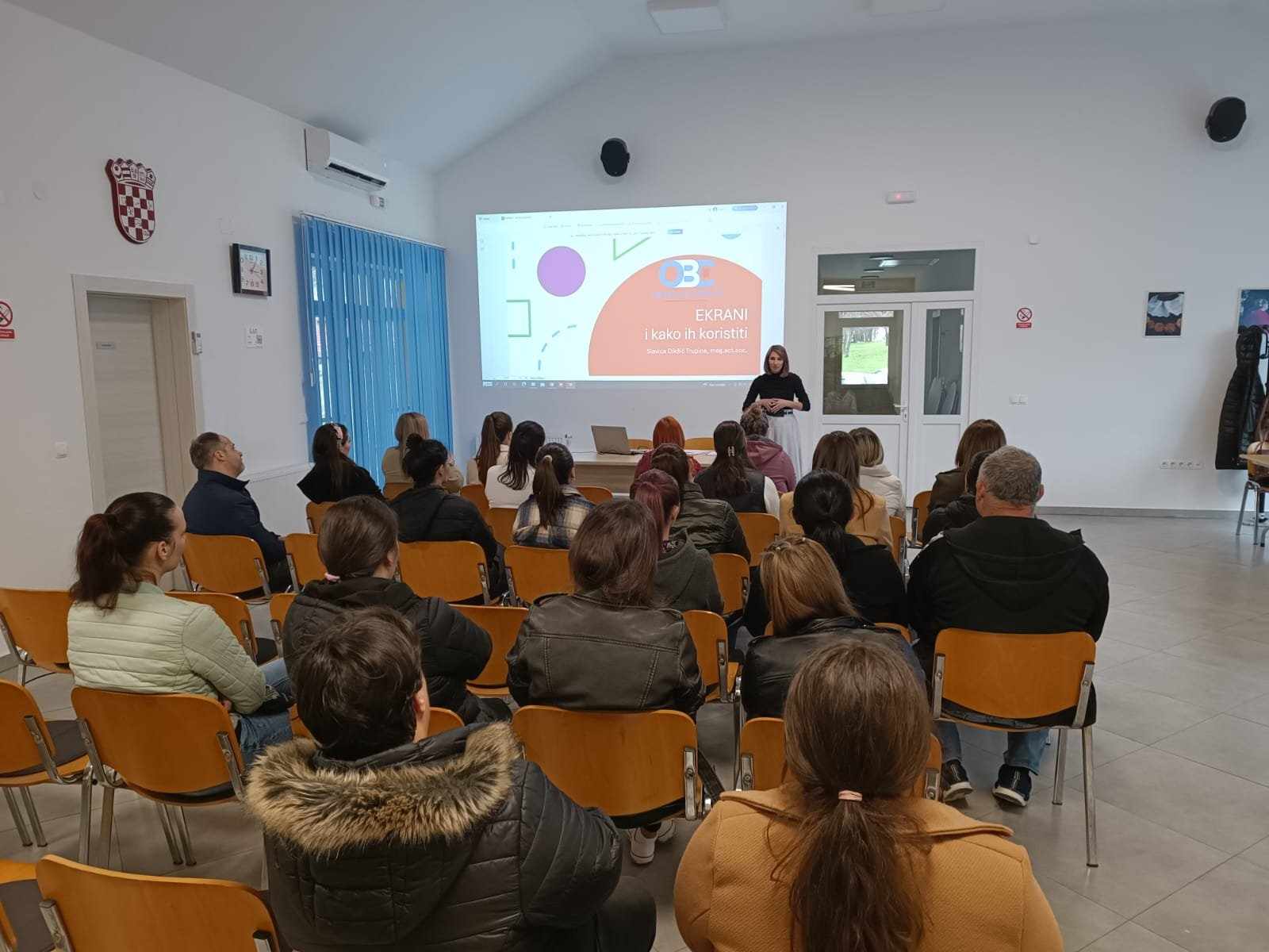 U sklopu programa Korak naprijed - za predškolske ustanove održano je predavanje pod naslovom Ekrani i kako ih koristiti od strane stručne radnice Slavice Dikšić Trupina, Obiteljskog centra, Područne službe Virovitičko-podravske. Na predavanju su sudjelovali roditelji i odgojitelji Dječjeg vrtića Jelenko Voćin. Razgovarali smo o temama roditeljstva i snalaženja u digitalnom okruženju, aktualnim istraživanjima i smjernicama, kako prekomjerna izloženost ekrana utječe na djece, kako postavljati granice te što raditi umjesto korištenja ekrana.