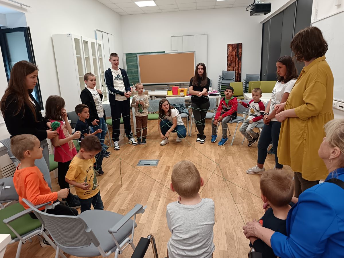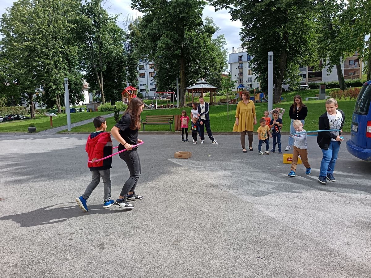 S udomljenom djecom su se stručne radnice Sanja Milković Šipek i Tamara Sadlovski družile od 15 sati u okviru radionice „Kad si sretan…". Razgovarali smo o sreći, pisali i crtali ono što nas čini sretnima, a onda tu sreću pretočili u pokret i izašli ispred EPIcentra Sequoia i igrali igre veseleći se i pomažući jedni drugima.