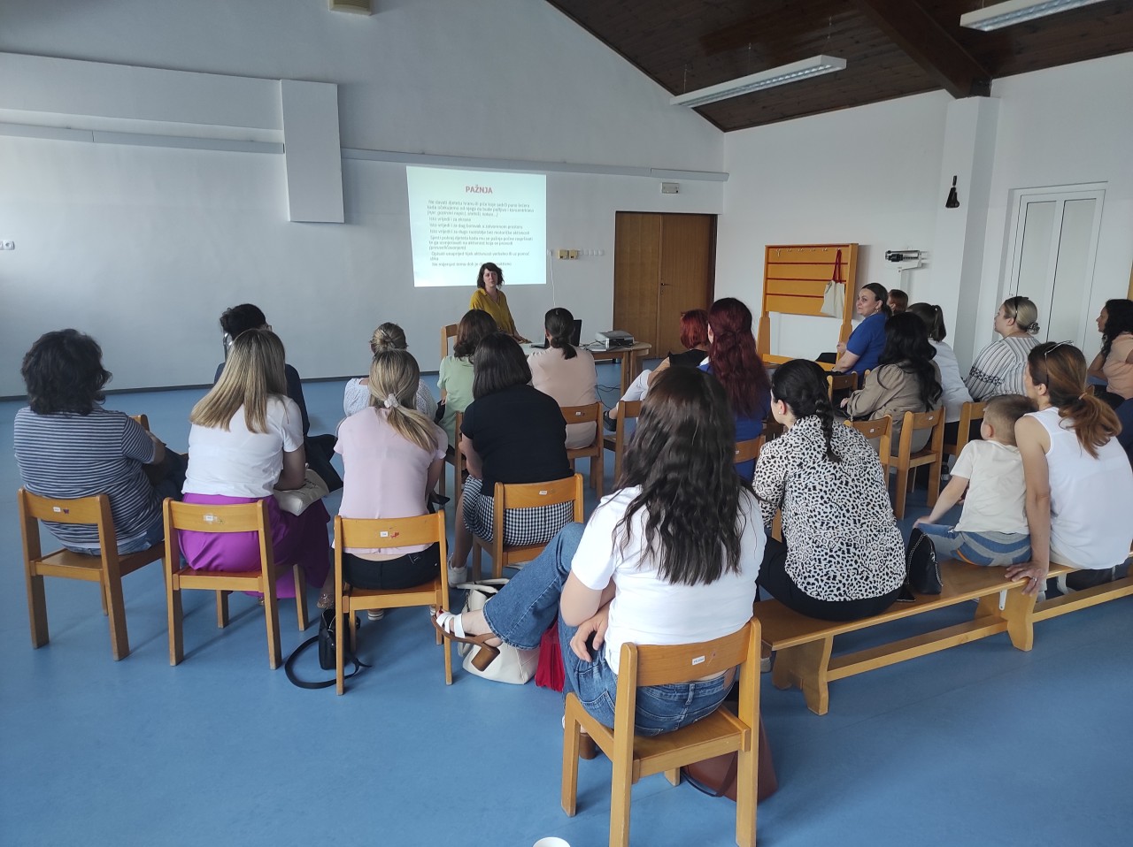U utorak 28. svibnja 2024. u Dječjem vrtiću „Zeko" u Slatini održano je predavanje u okviru programa „Korak naprijed". Obiteljski centar, Područna služba Virovitičko- podravska provodi ovu programsku aktivnost u vrtićima Virovitičko-podravske županije s ciljem pružanja potpore roditeljima u ispunjavanju njihovih dužnosti i prava, govoreći o temama vezanima uz roditeljstvo djece predškolske dobi. Predavanje pod nazivom „Kako poticati razvoj djece" za zainteresirane roditelje, ali i odgojiteljice održala je Tamara Sadlovski, stručna radnica edukacijska rehabilitatorica.