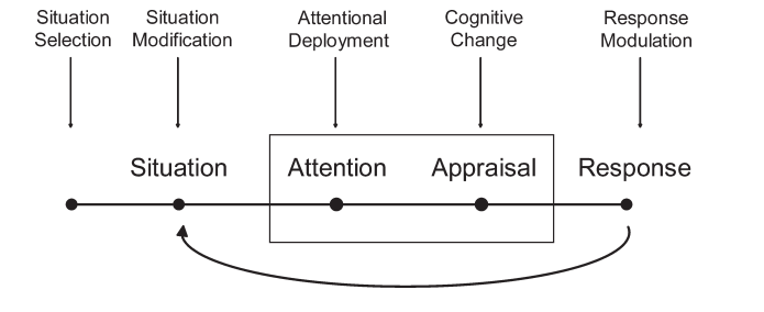 Emocionalna regulacija odnosi se na proces utjecanja na to koje emocije osoba ima, kada ih ima te kako ih doživljava i izražava (Gross, 1988., Sloan i Kring, 2007.; svi prema Wolgast i sur., 2011.). Važno je napomenuti da emocionalna regulacija može biti vanjska (npr. roditelj pomogne djetetu da regulira svoju ljutnju) ili unutarnja (npr. roditelj umiri sam sebe) (Gross, 2008.). Ovdje ćemo se usmjeriti na unutarnju emocionalnu regulaciju, odnosno samoregulaciju. Nastavljajući na prethodno opisani Grossov model o procesu pobuđivanja emocija, a koji sadrži nekoliko komponenti, i emocionalna samoregulacija može se odvijati u više točaka.