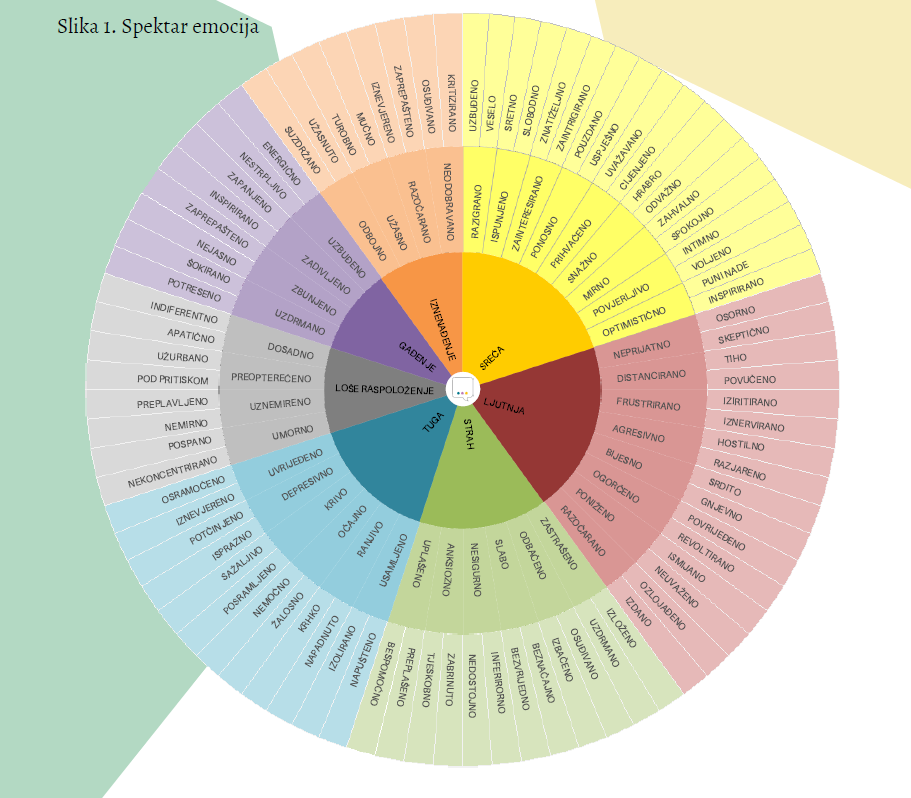 Cijeli spektar ljudskih emocija prikazan je na Slici 1. na kraju ovoga poglavlja.