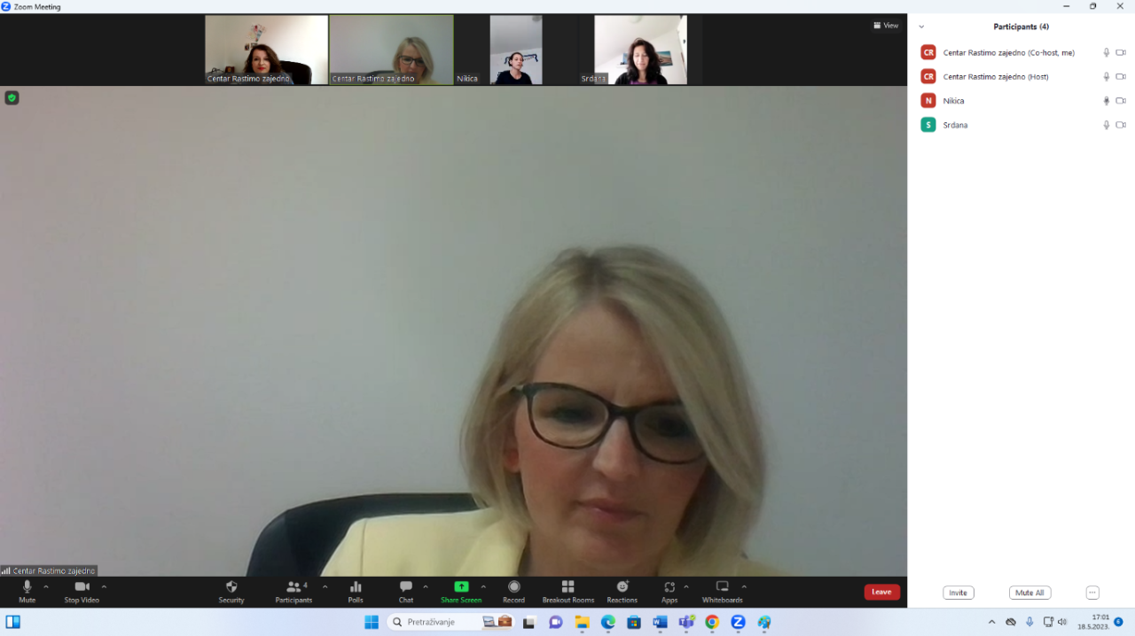 Obiteljski centar, Područna služba Dubrovačko-neretvanska uspješno je proveo još jedan ciklus radionica "Rastimo zajedno on-line". Radionice su trajale od 16.ožujka do 25. svibnja 2023.g. Program je namijenjen roditeljima koji imaju otežavajuće okolnosti u roditeljstvu ili koji iz raznih razloga ne mogu sudjelovati u programima "licem u lice".