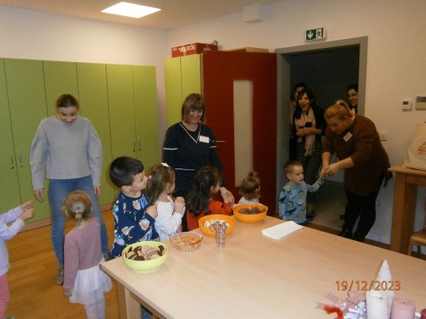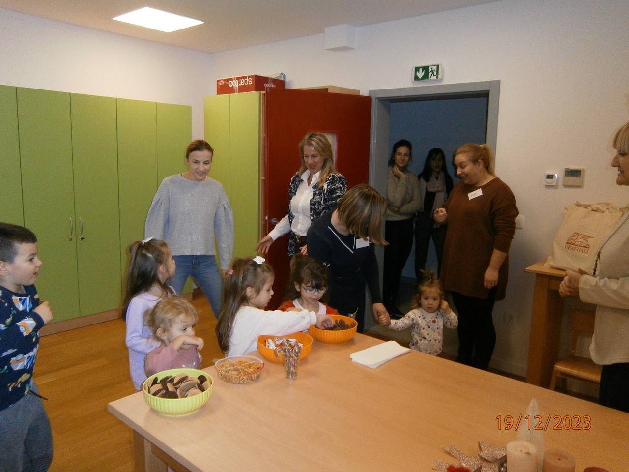 Ravnateljica Dječjeg vrtića Carić, Sandra Karavanić, prof. pedagogije, voditeljica Područne službe Ličko – senjske Suzana Svetić, mag. paed. soc. i stručna radnica Anita Crnjak, mag. psych. družile su se s prisutnim roditeljima i djecom nakon čega je održana šesta radionica iz ciklusa programa Rastimo zajedno.