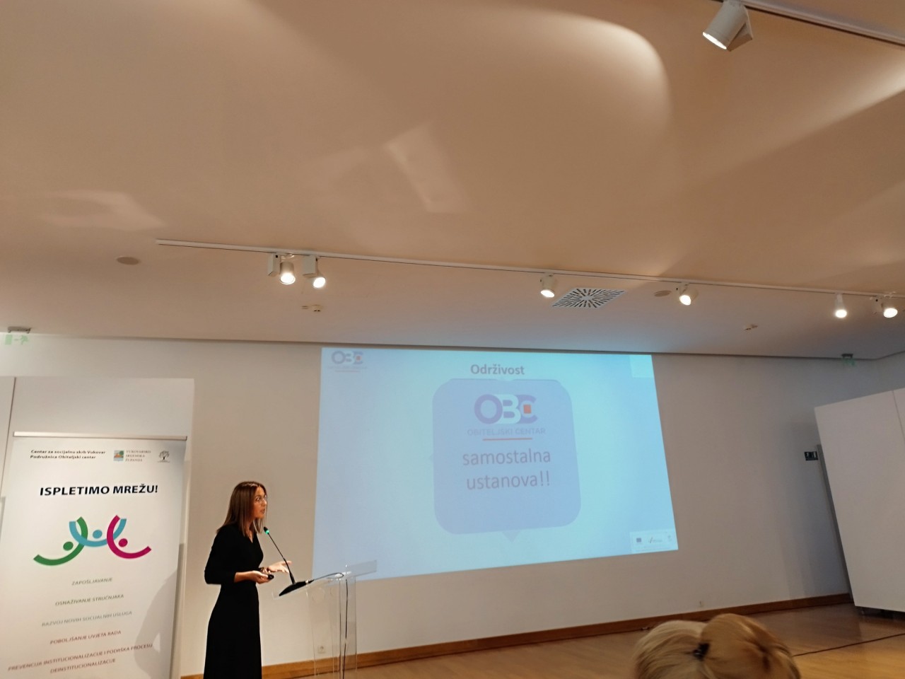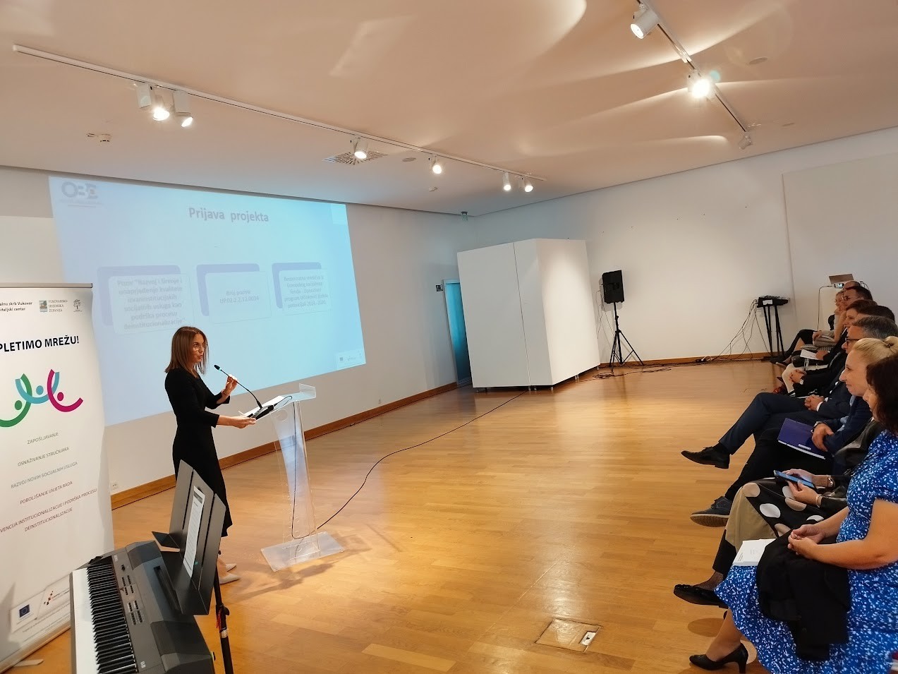 Nakon uvodnih riječi v.d. voditeljice Područne službe Vukovarsko-srijemske i koordinatorica projekta, Ružica Pandža predstavila je provedene aktivnosti i rezultate Projekta. Cilj projekta jeste prevencija institucionalizacije - podrška procesu deinstitucionalizacije što je ostvareno kroz unaprjeđenje postojećih i razvijanje novih socijalnih usluga te senzibiliziranje javnosti i promicanje prava ranjivih skupina društva na život u obitelji zapošljavanjem tri stručne radnice na Projektu, osnaživanjem stručnjaka putem stručnog usavršavanja i pohađanjem različitih edukacija te poboljšanjem uvjeta rada