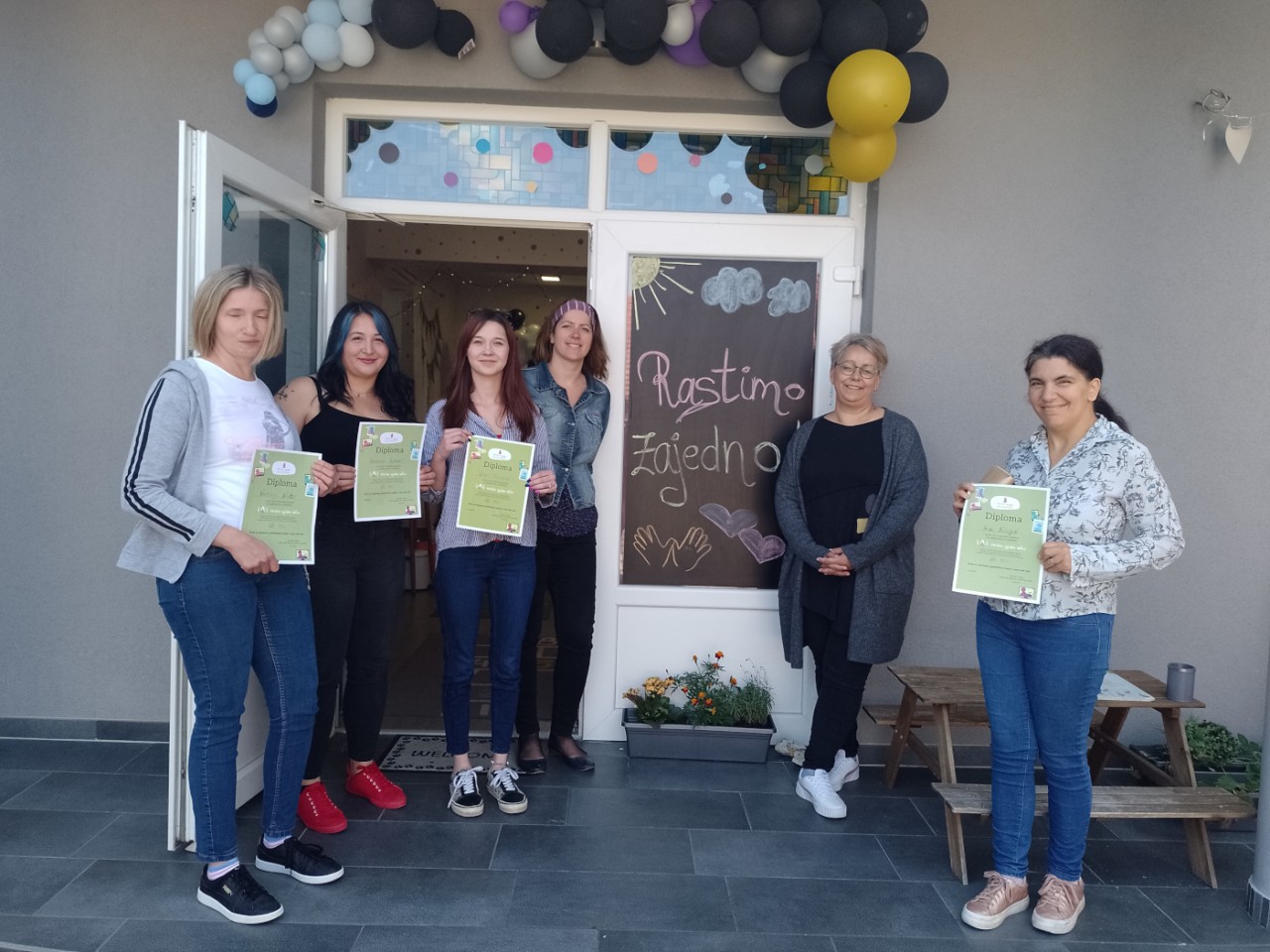 Dok su djeca uz animatorice otkrivala novi prostor, igrala se i družila, počastila tortom, roditelji su zajedno s voditeljicama zaokružili svoju Rastimo zajedno edukaciju. Po njihovom mišljenju, radionice su bile korisne – posebno su istaknute teme komunikacije, temperamenta te razvojnih odrednica kao vrlo korisne. Zadovoljne su što su bile uključene u radionice, te posebno pohvaljuju mogućnost da sudjeluju online, jer im je, radi udaljenosti od Virovitice, takav oblik sudjelovanja najjednostavniji i zapravo jedino izvediv.